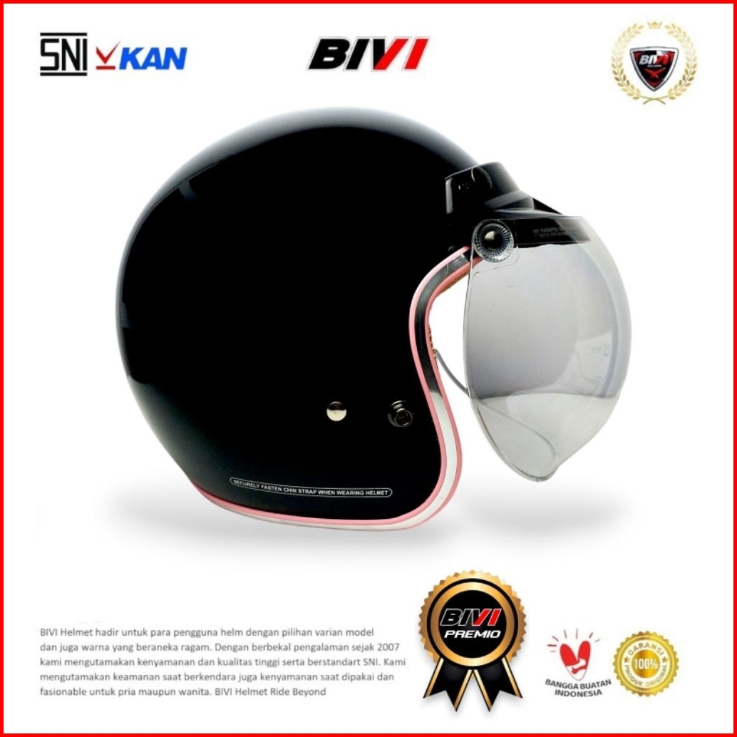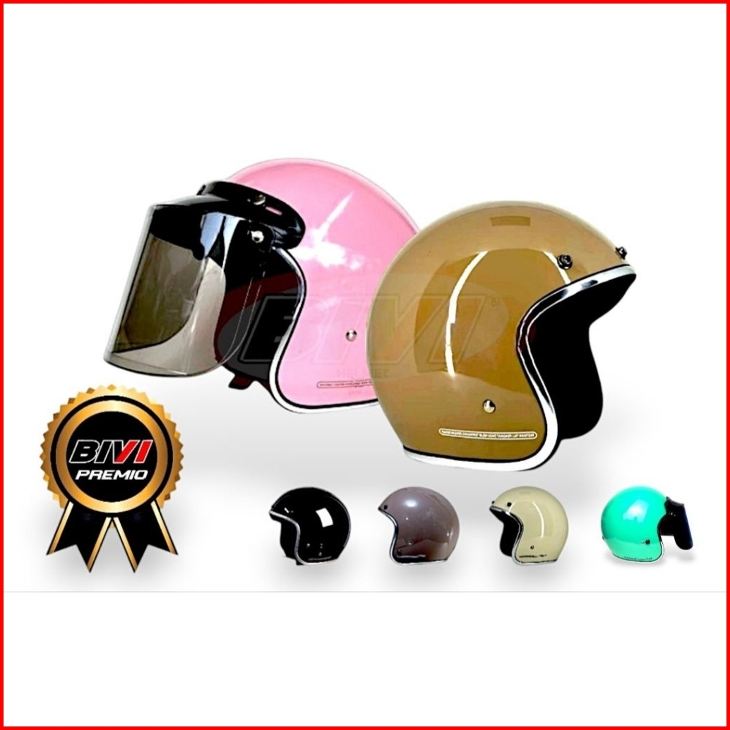 Helm Bogo Retro Premio List Chrome Ori Bivi Half Face Sni Pria-wanita