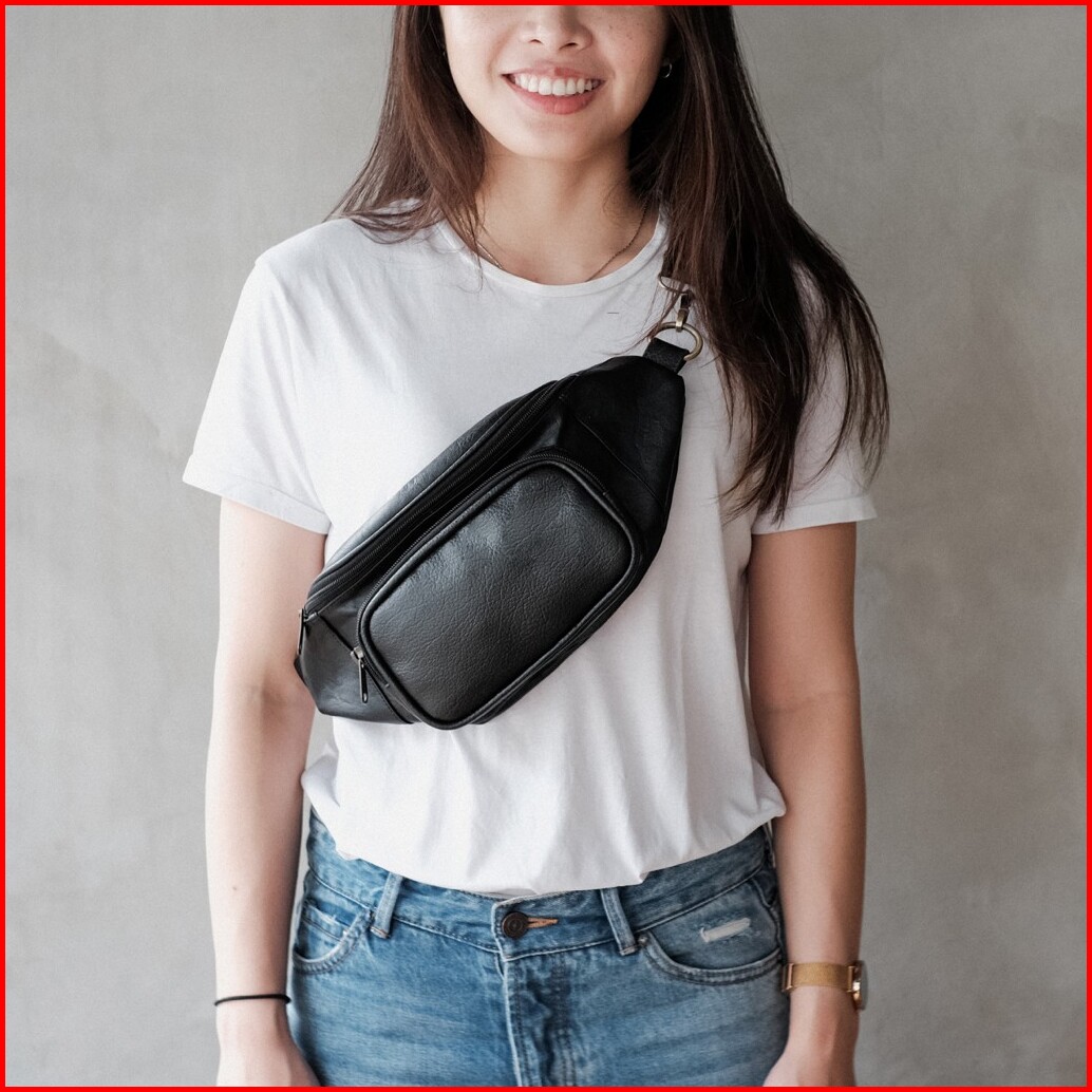 Houston Black Tas Pinggang Bum Sling Bag Waistbag Tas Slempang Premium Faux Leather From The Daily Smith