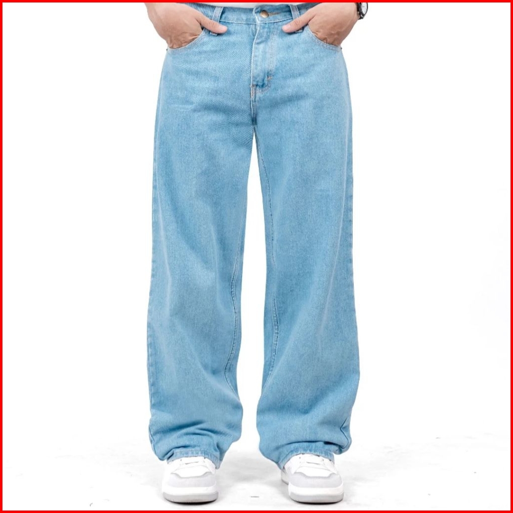Celana Jeans Pria Loose Pants Straight Baggy Korean Style Gombrong Reguler Fit Celana Jeans Gombrong
