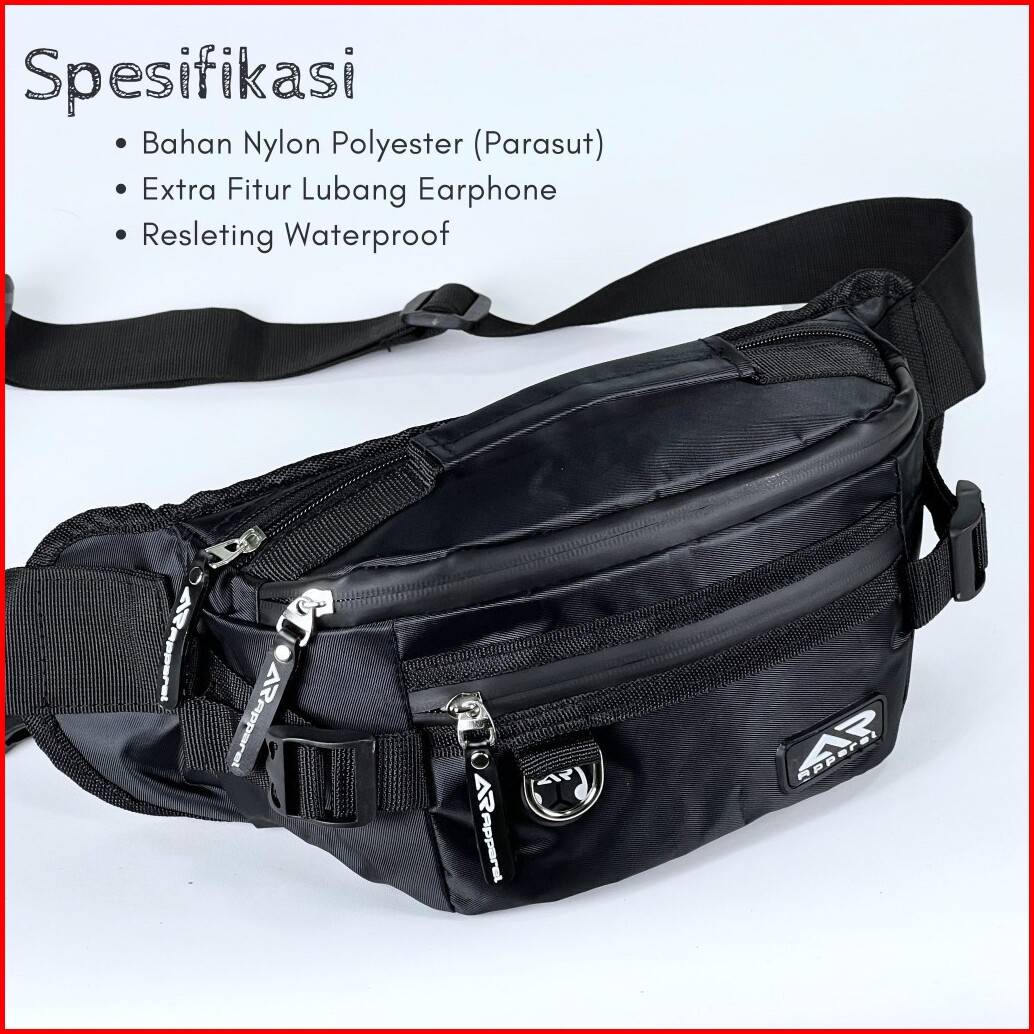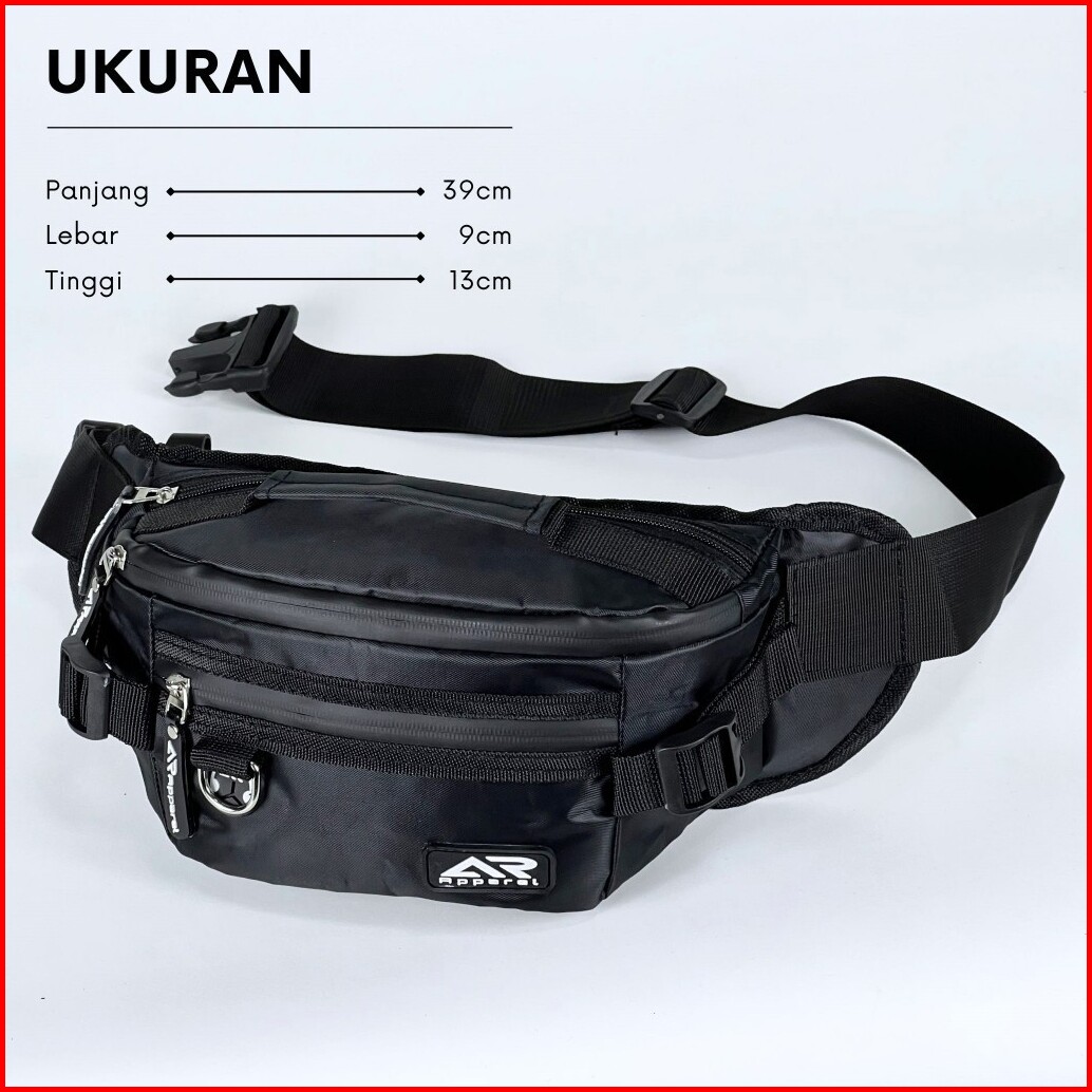 Ar Apparel Tas Selempang Pria Waistbag Black Box Slingbag Sporty Tas Pinggang Pria