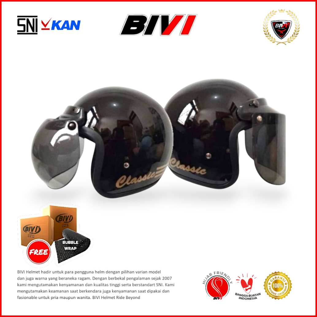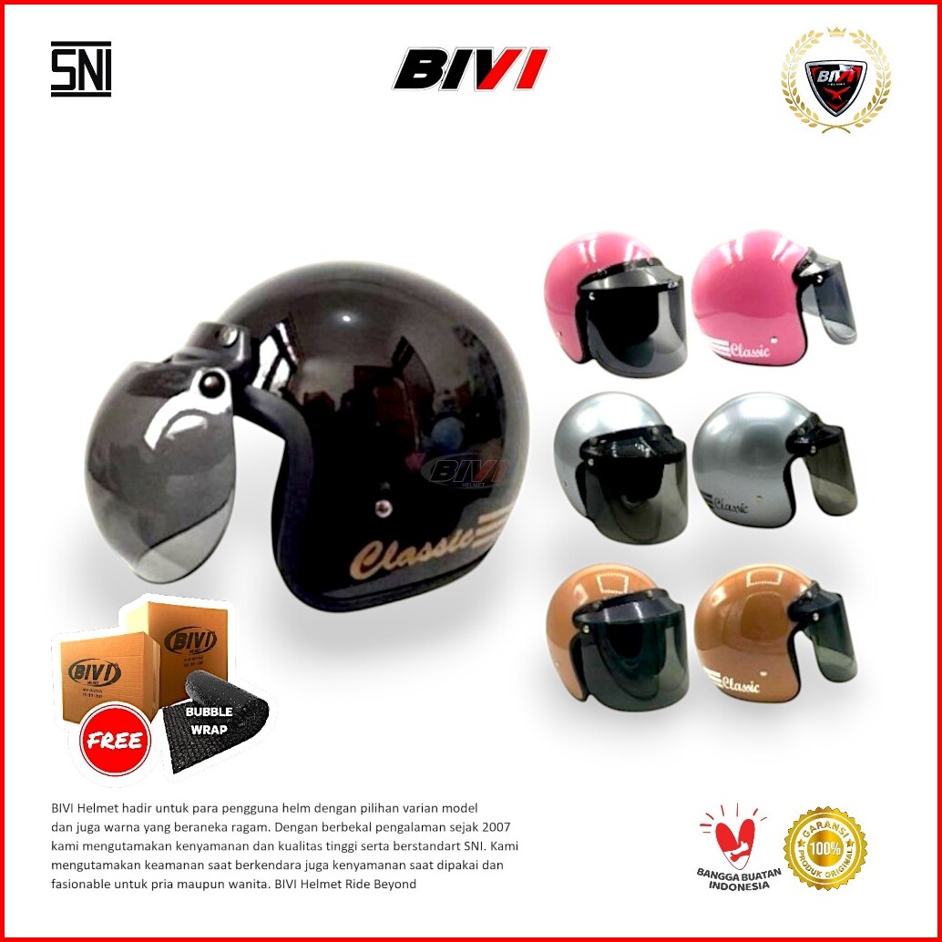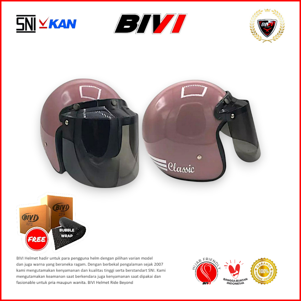 Helm Retro Bogo - Bg Bivi Garis Sni Half Face Pria Wanita