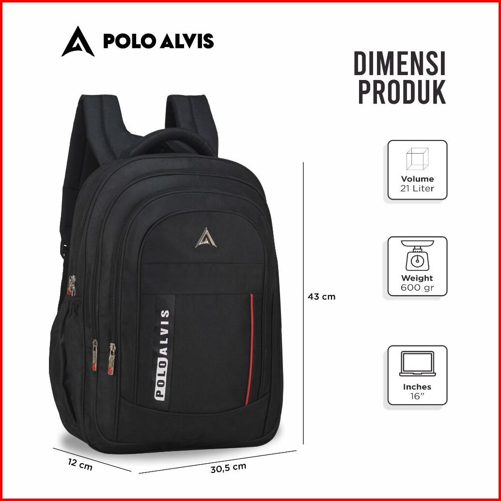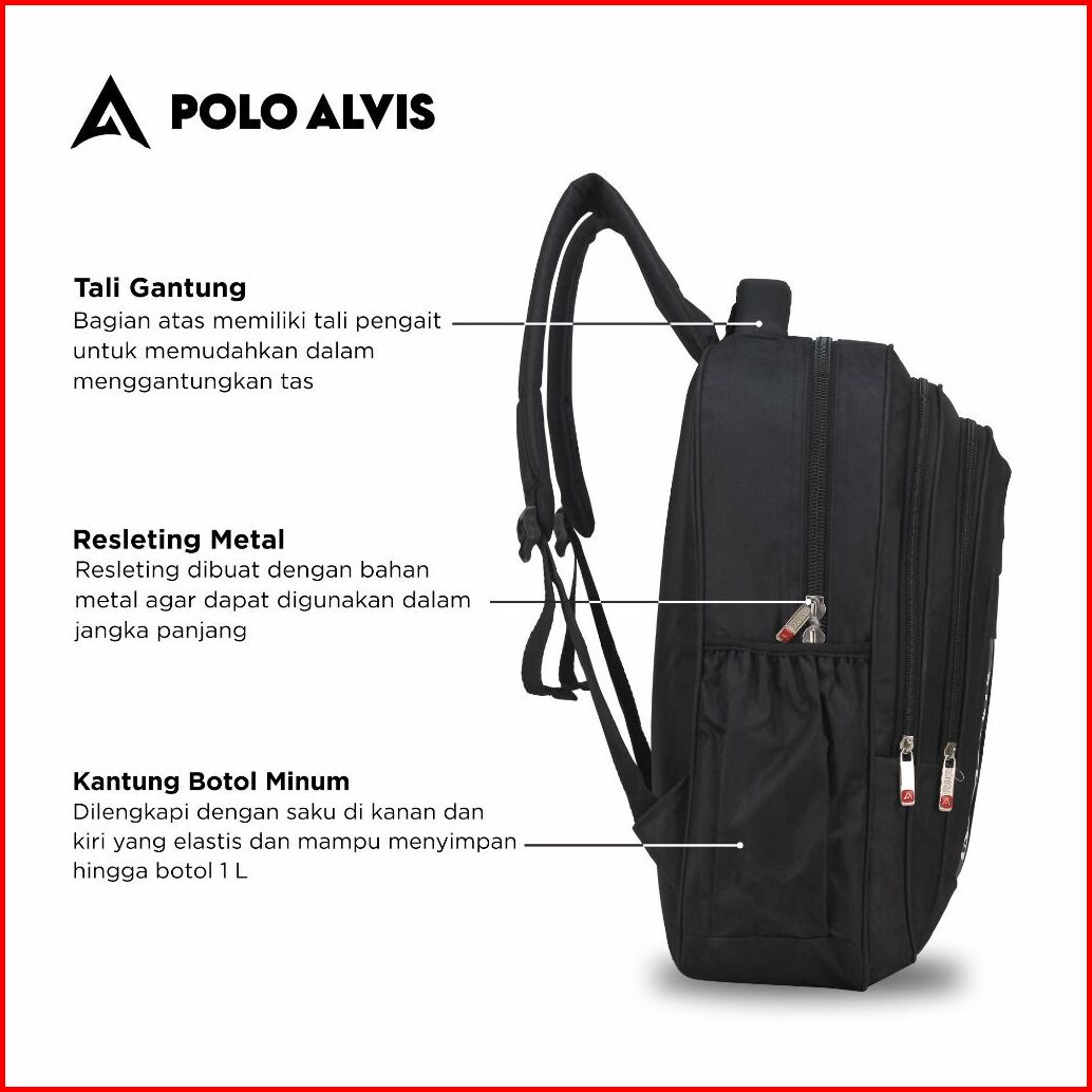 Polo Alvis - Pro Avid Tas Ransel Sekolah Cowok Smp Sma Kuliah Hitam Laptop 15in Bonus Jas Hujan Tas