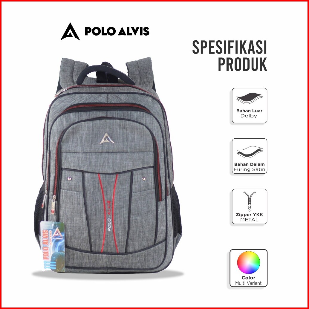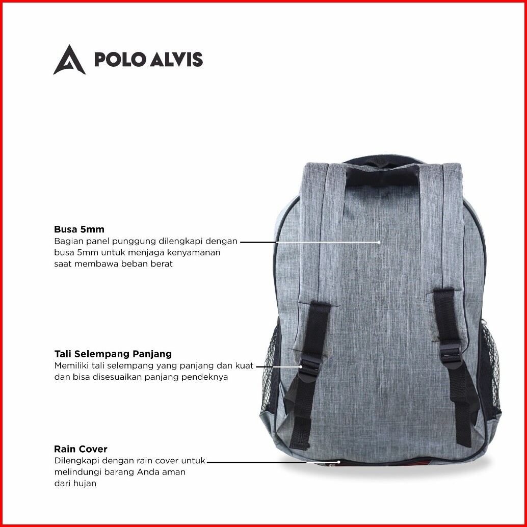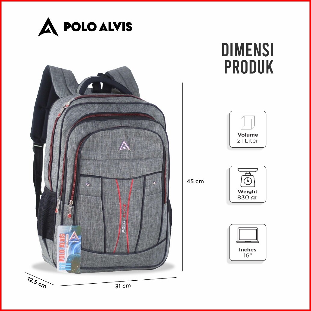 Polo Alvis - Pro Dynamic Grey Backpack Pria Sekolah Sma Kuliah Kerja Ransel Polo Original 16 Dobly