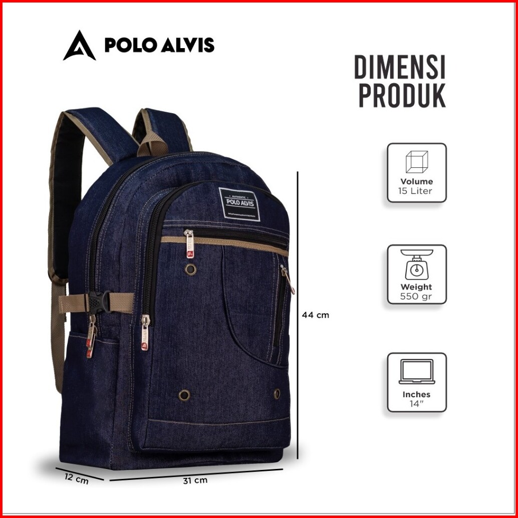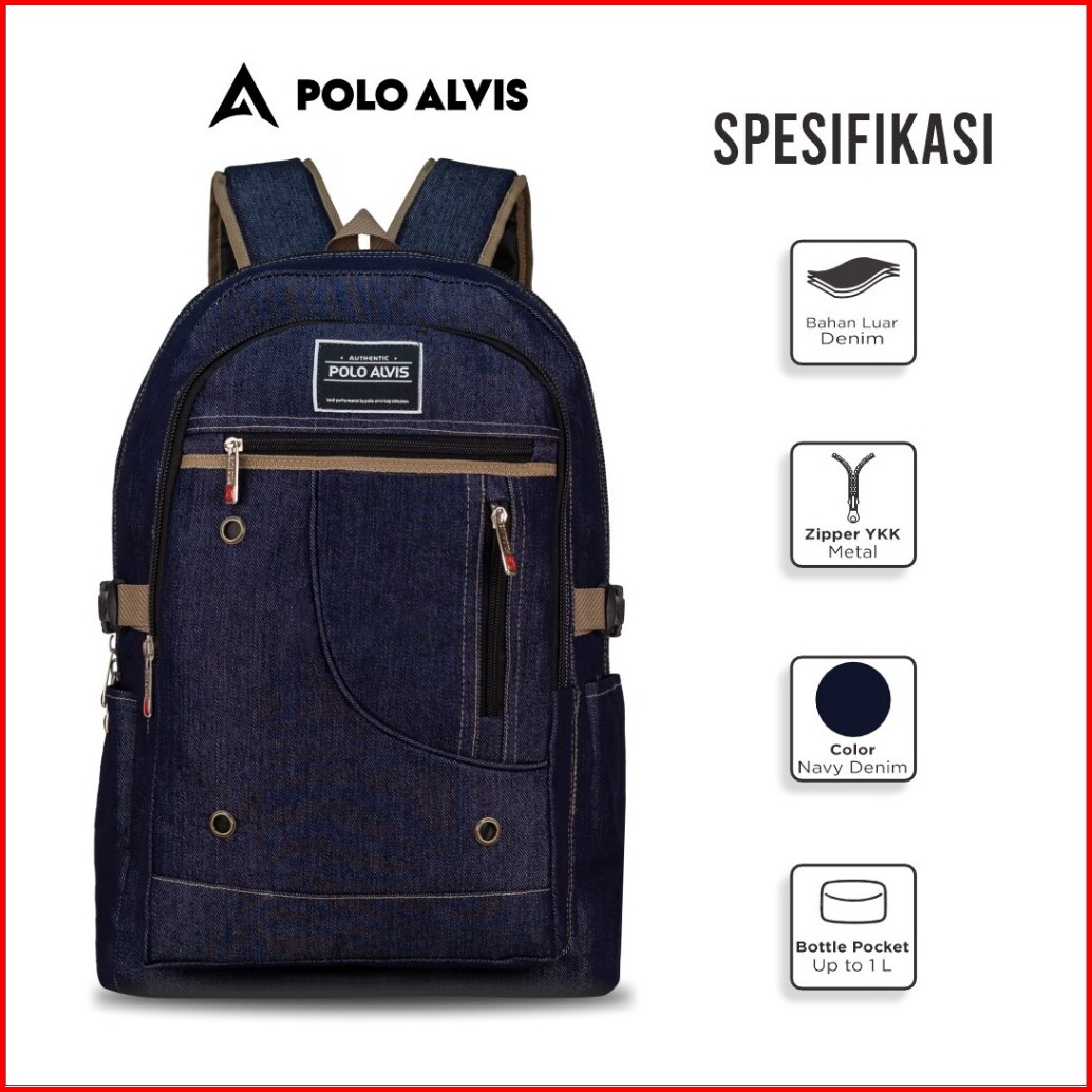 Polo Alvis - Urban Lisbon Navy Tas Sekolah Biru Navy Denim Smp Sma Kuliah Fashionable