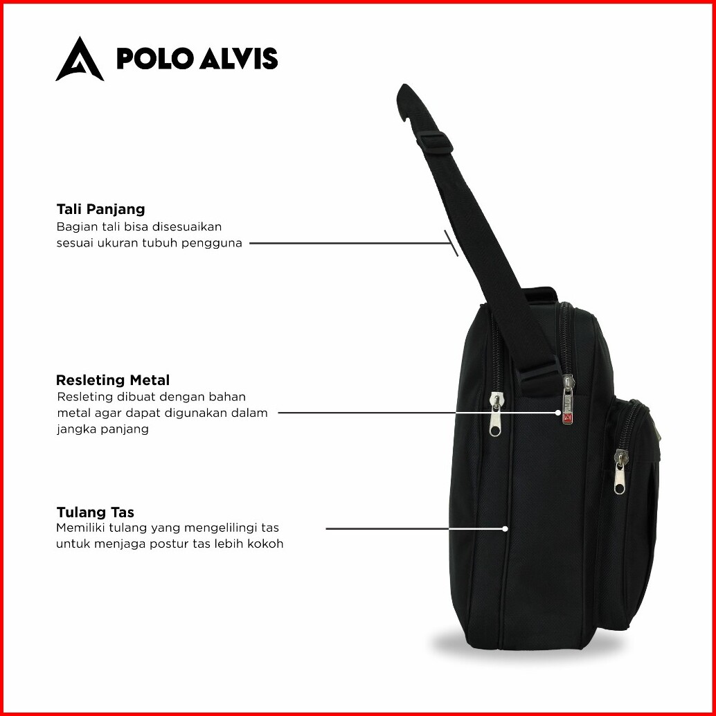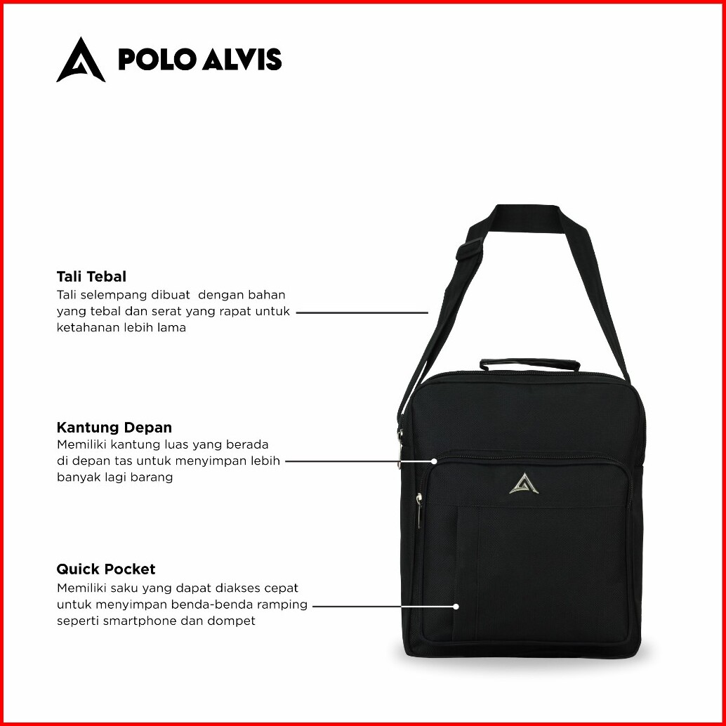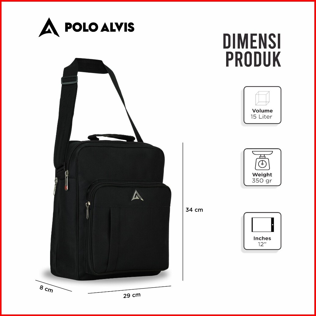 Polo Alvis - Orbit Zenith Tas Selempang Pria Polyester 12 Inch Tablet Ipad Tas Messanger Hitam Tebal