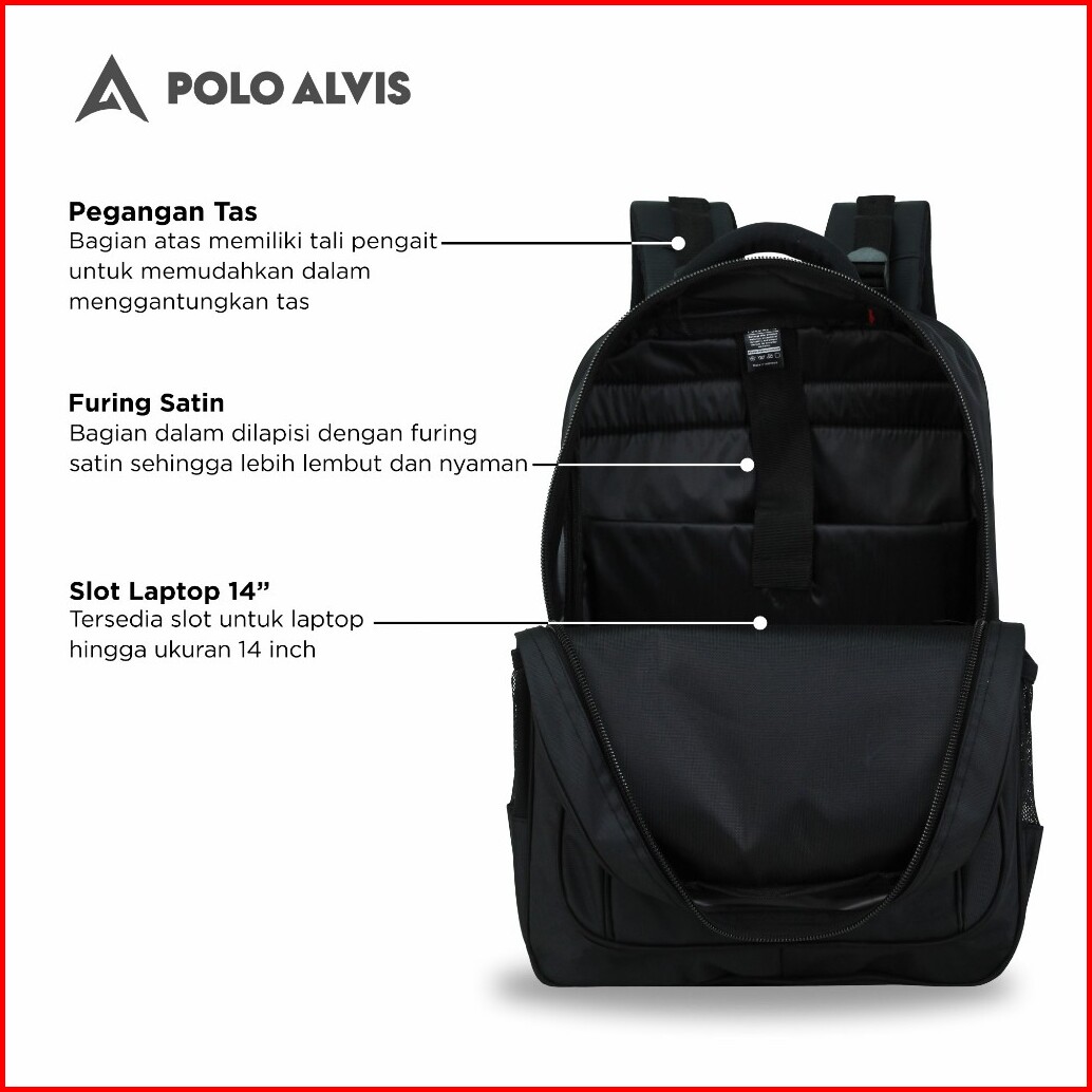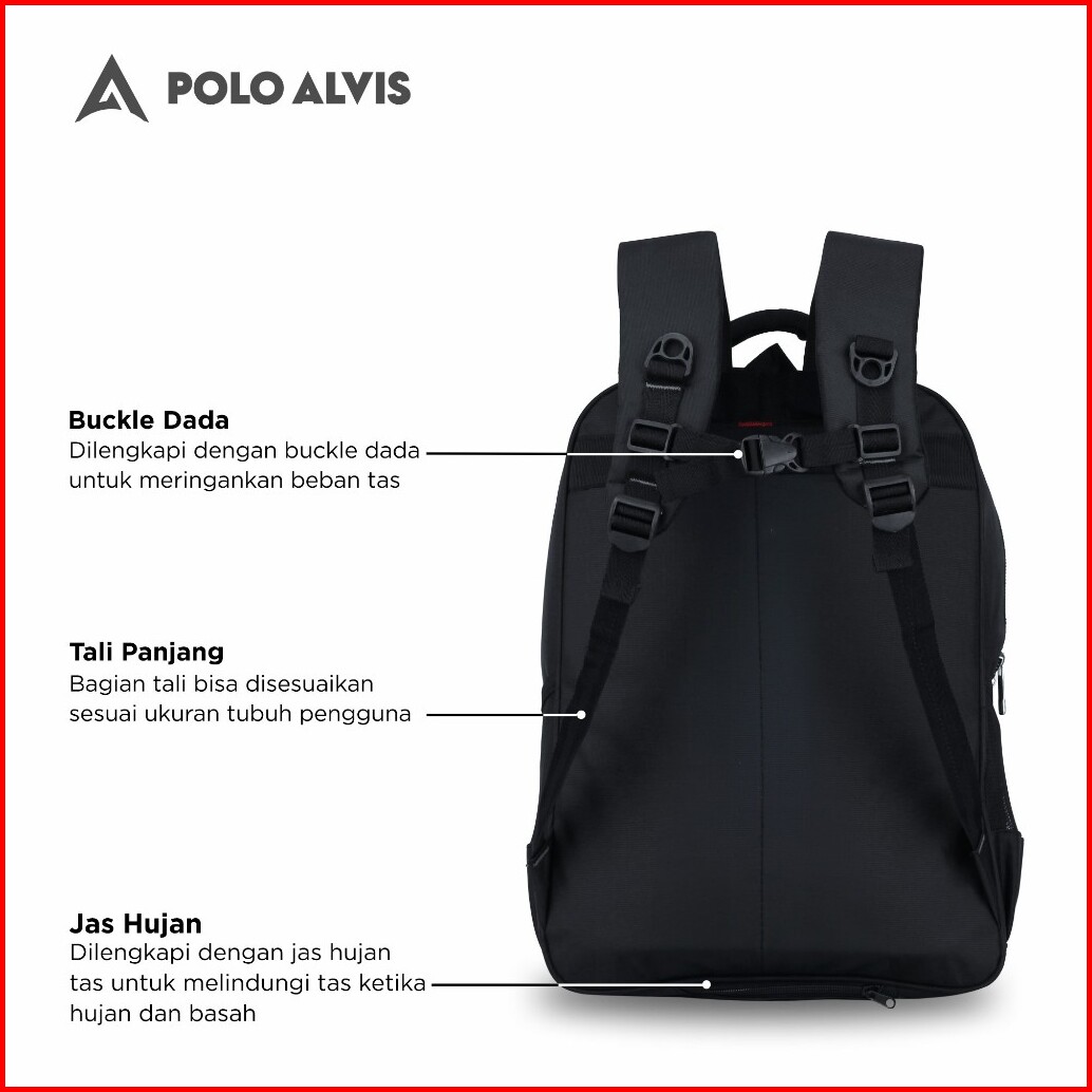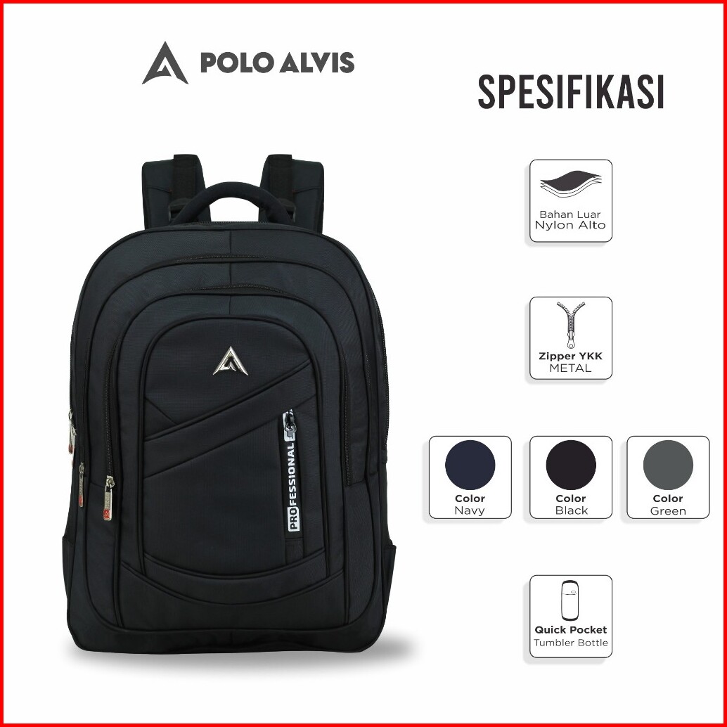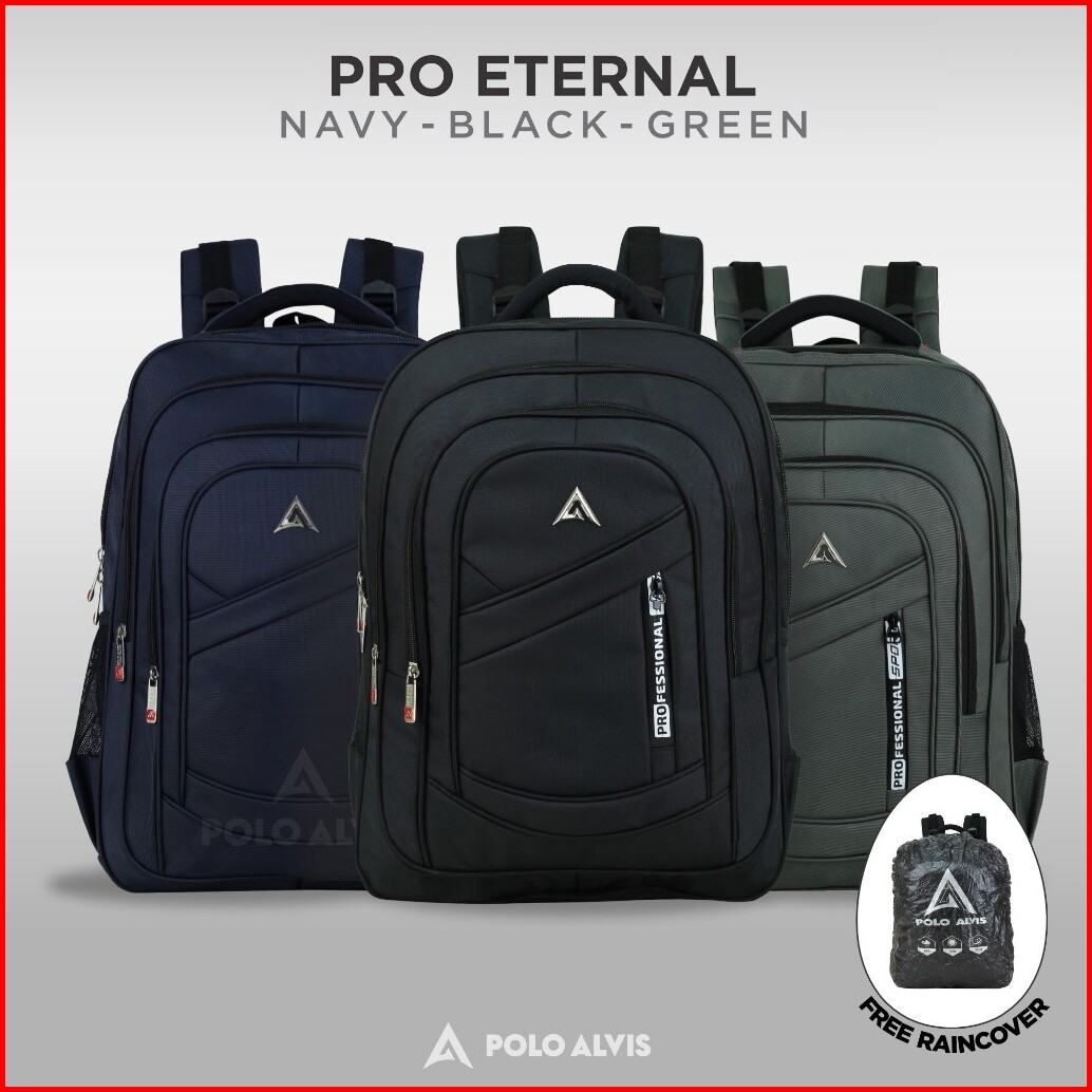 Polo Alvis - Pro Eternal Tas Ransel Kerja Sekolah Kuliah Backpack Laptop 20 Inch Nilon Rain Cover