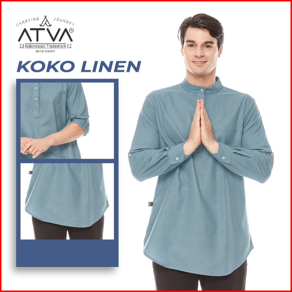 Atva Baju Koko Kurta Pria Bahan Linen Tangan Panjang Kemko Cowok Linen Series