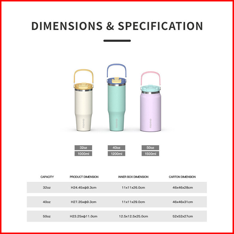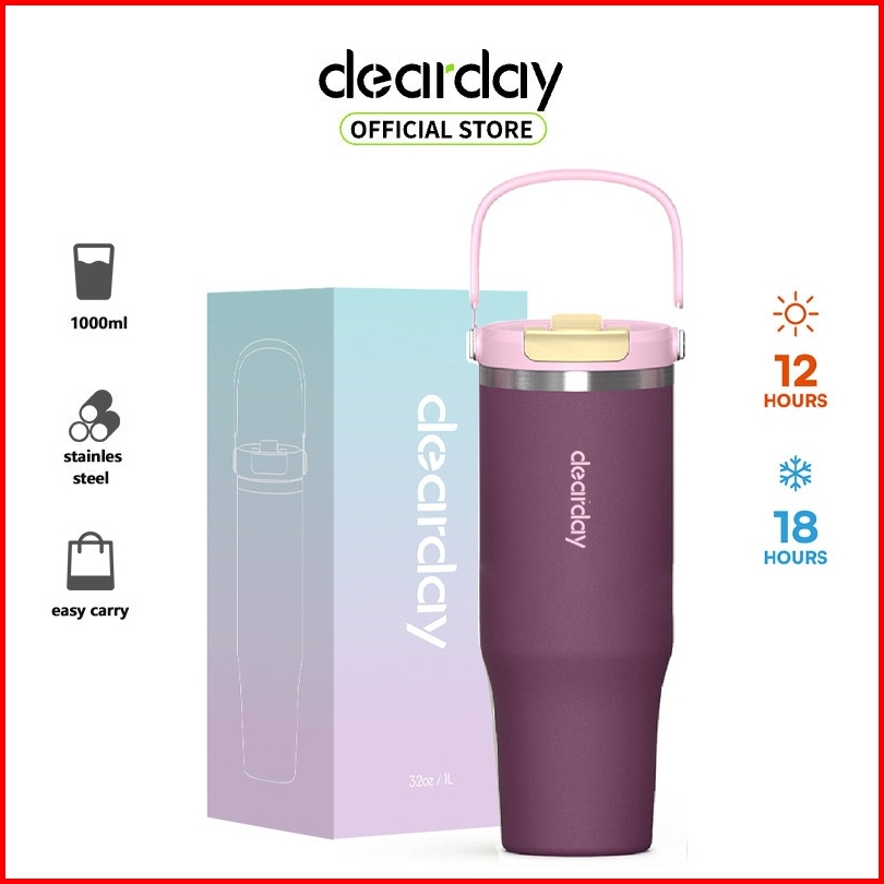 Dearday Tumbler Portable Stainless 1000 Ml Thermos Cup Vacuum Insulated Purple