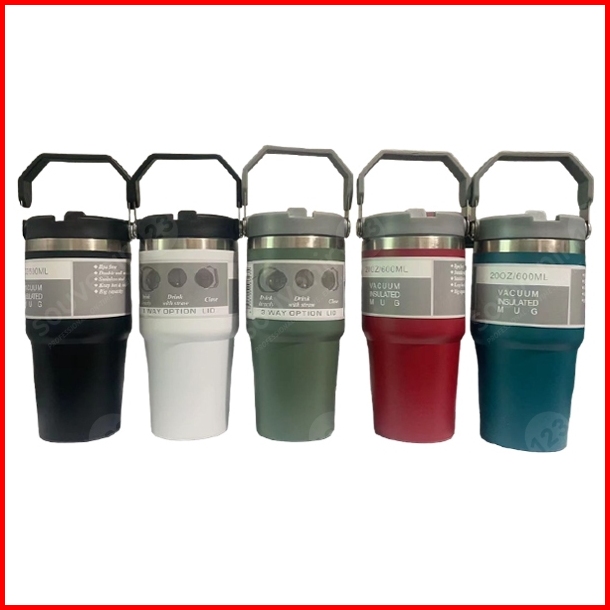 Tumbler Handle Coffee Cup Stainless Steel 316 Kapasitas 600 Ml Termos Insulated Cup Stainless Sus 316 Termos Sedotan Lip