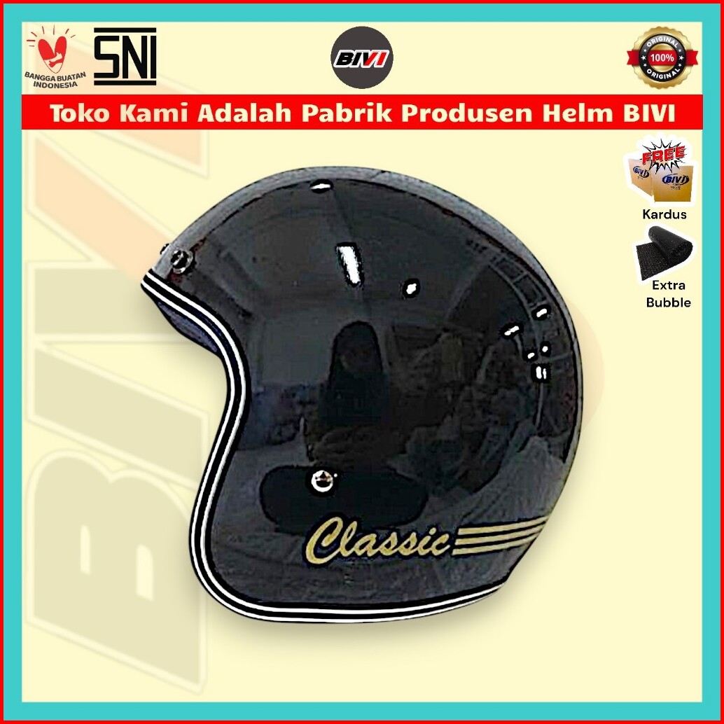 Helm Bivi Bogo Classic Black Glossy Kaca Sni Retro Half Face Pria Wanita Best Seller