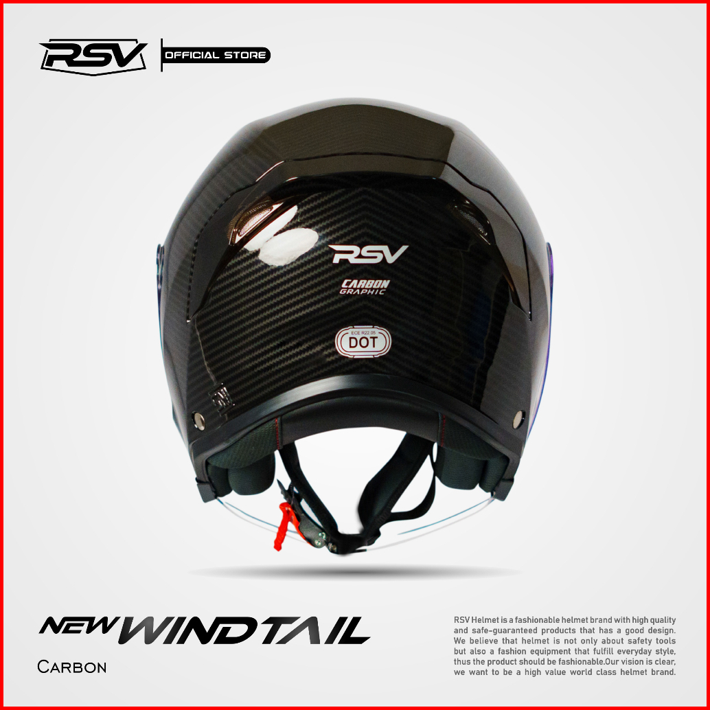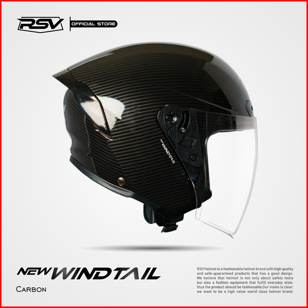 Helm Rsv New Windtail Carbon Glossy Single Visor - Helm Half Face