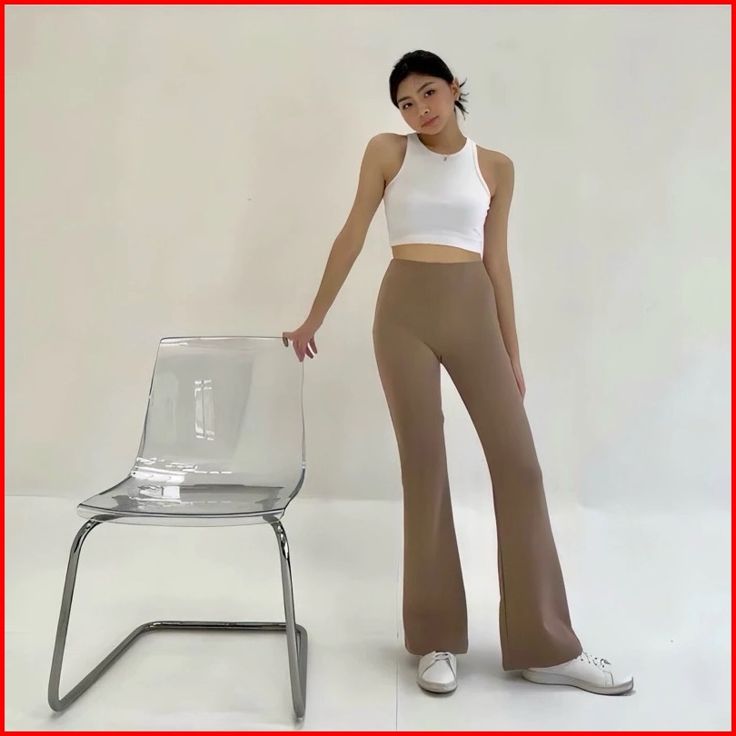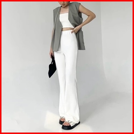Celana Fit Flare Pants Cutbray Scuba Pinggang Highwaist Bahan Stretch Melar Elastis Silmy