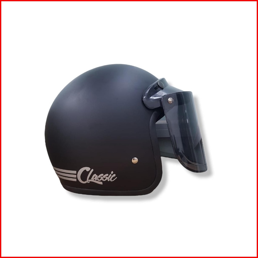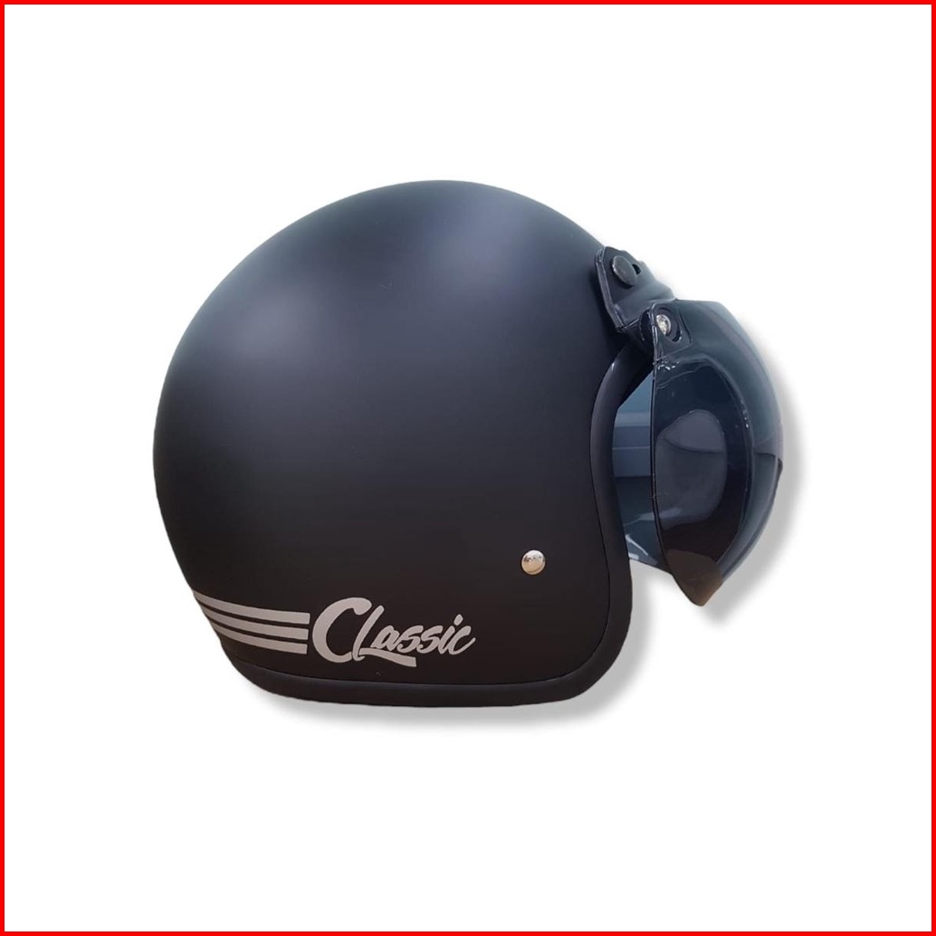 Helm Bogo Retro Classic Beta Black Doff Kaca
