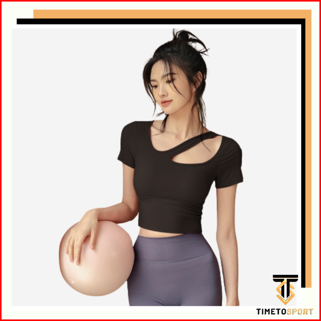 Timetosport Atasan Baju Olahraga Wanita Crop Top Lengan Pendek Wanita Highimpact Olahraga Fitness Gym Zumba 1128