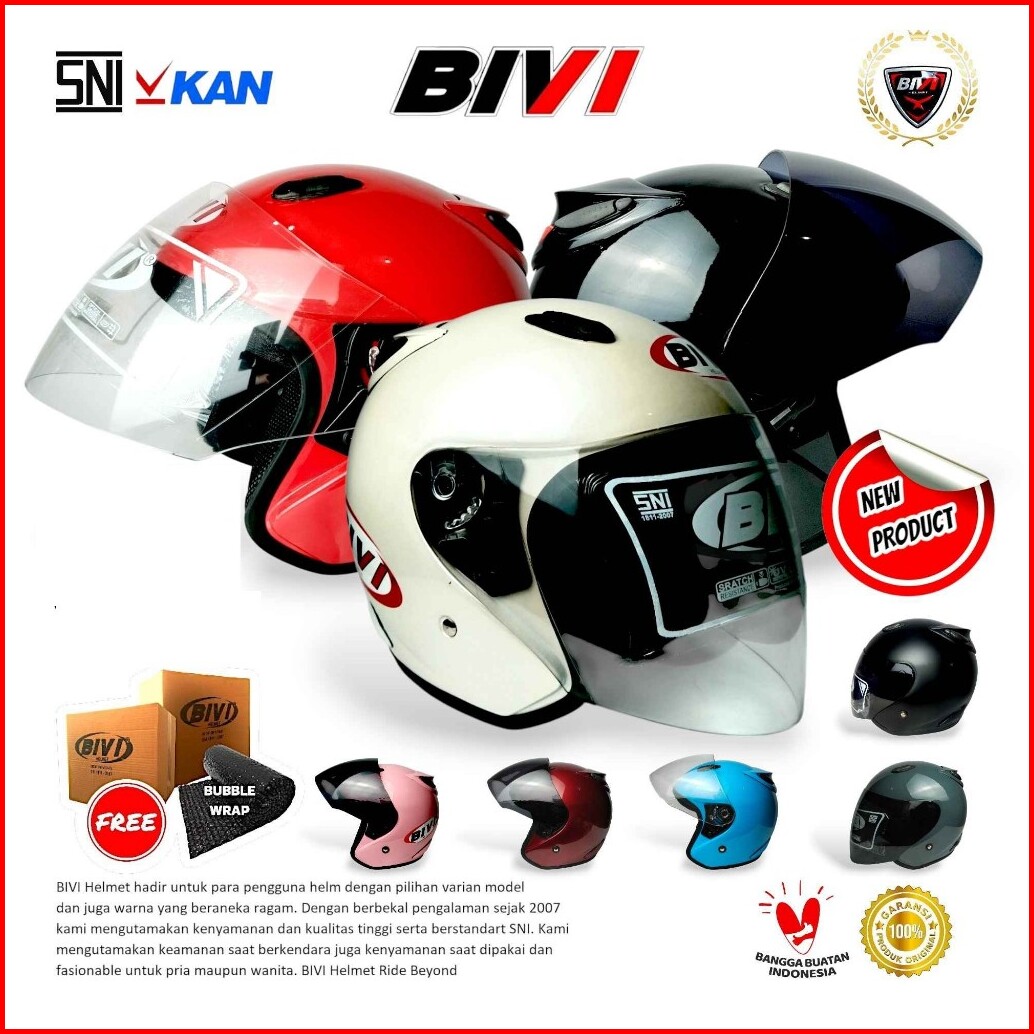 Helm Bivi Centro Solid Kaca Half Face Sni Pria Wanita Dewasa Hijab