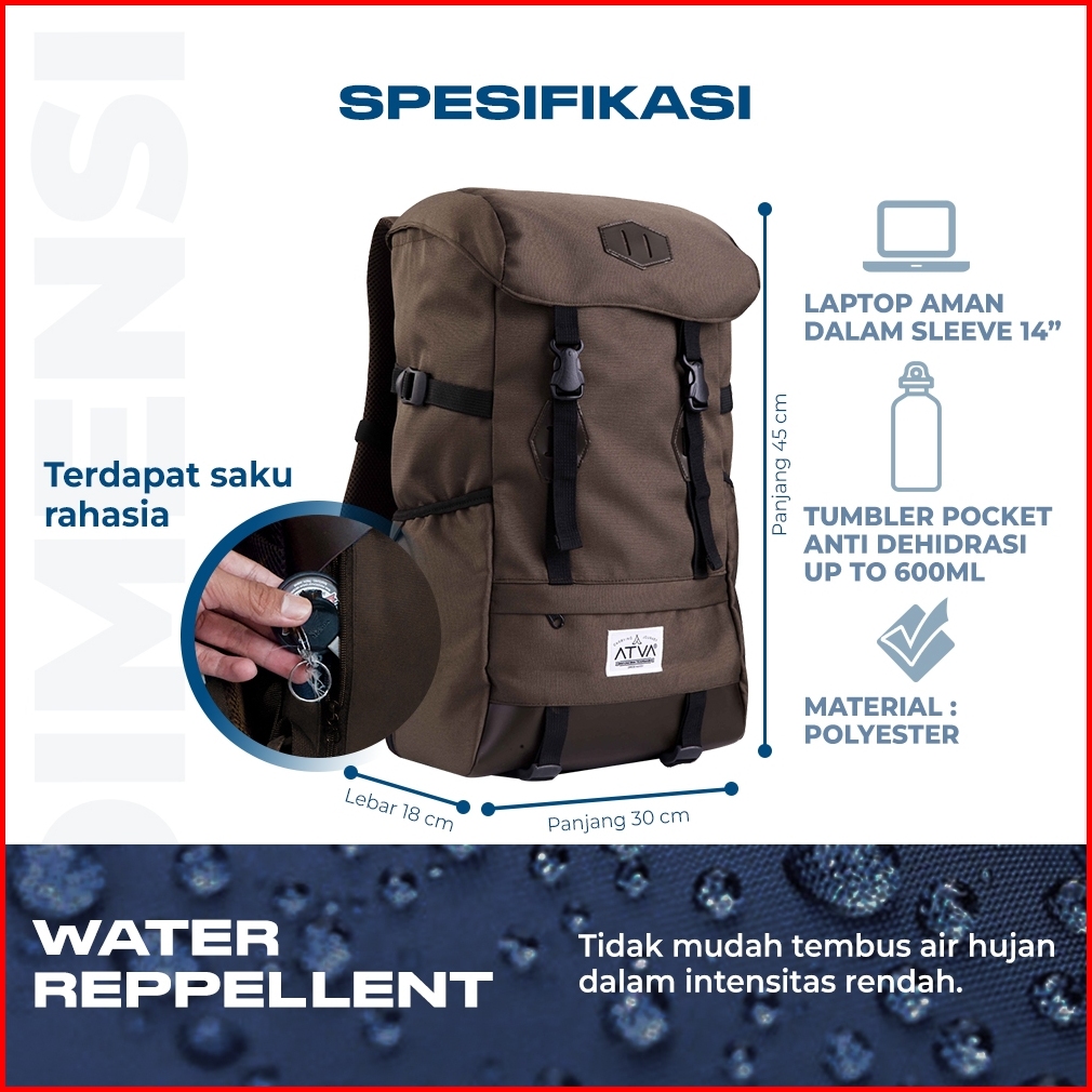 Tas Ransel Pria Wanita Muat Laptop 14 Inch Tas Backpack Daily Tas Gendong Cewek Cowok Backpack Kuliah Kerja Atva Lidder
