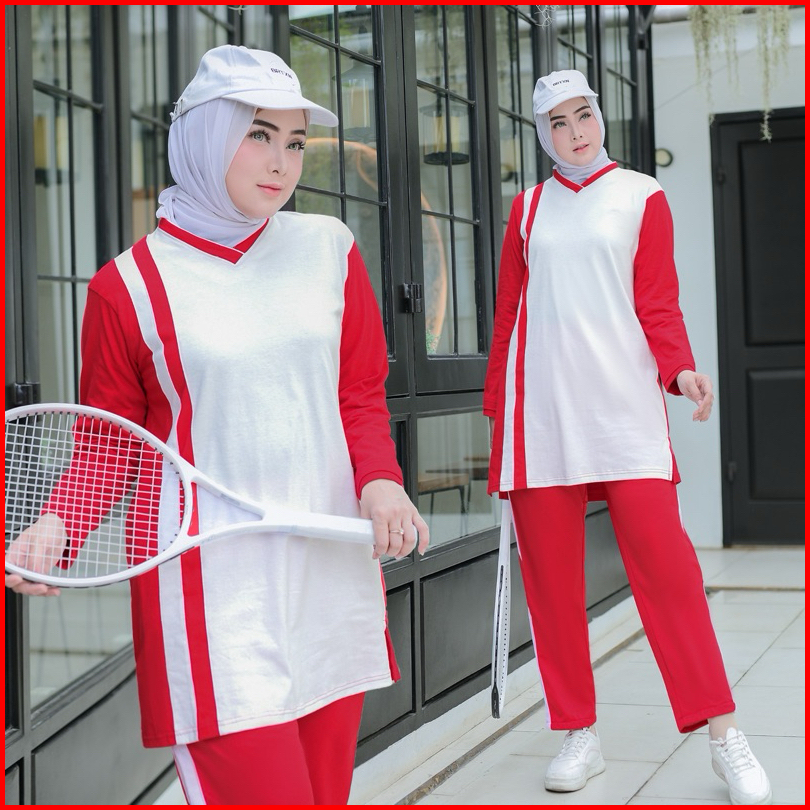 Atasan Olahraga Model Kerah Dan Tunik Merah Putih