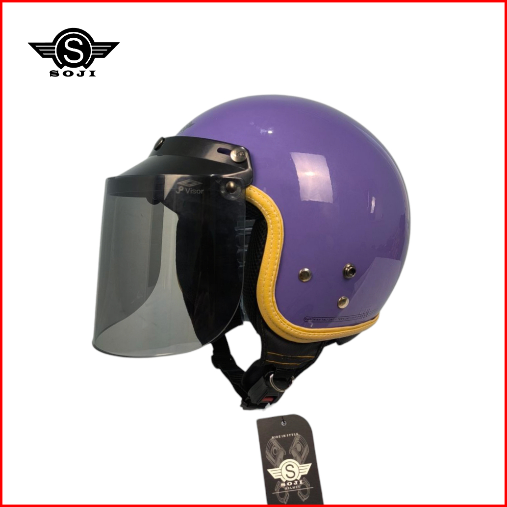 Soji Helm Retro Classic Reno Solid Dewasa Kaca Datar Hitam