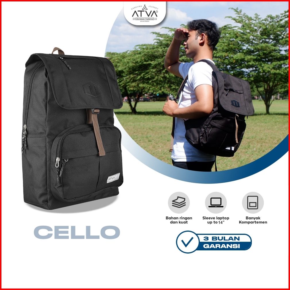 Atva Tas Ransel Pria Wanita Daily Backpack Laptop 14 Inch Tas Sekolah Kuliah Cewek Cowok Cello Series Black