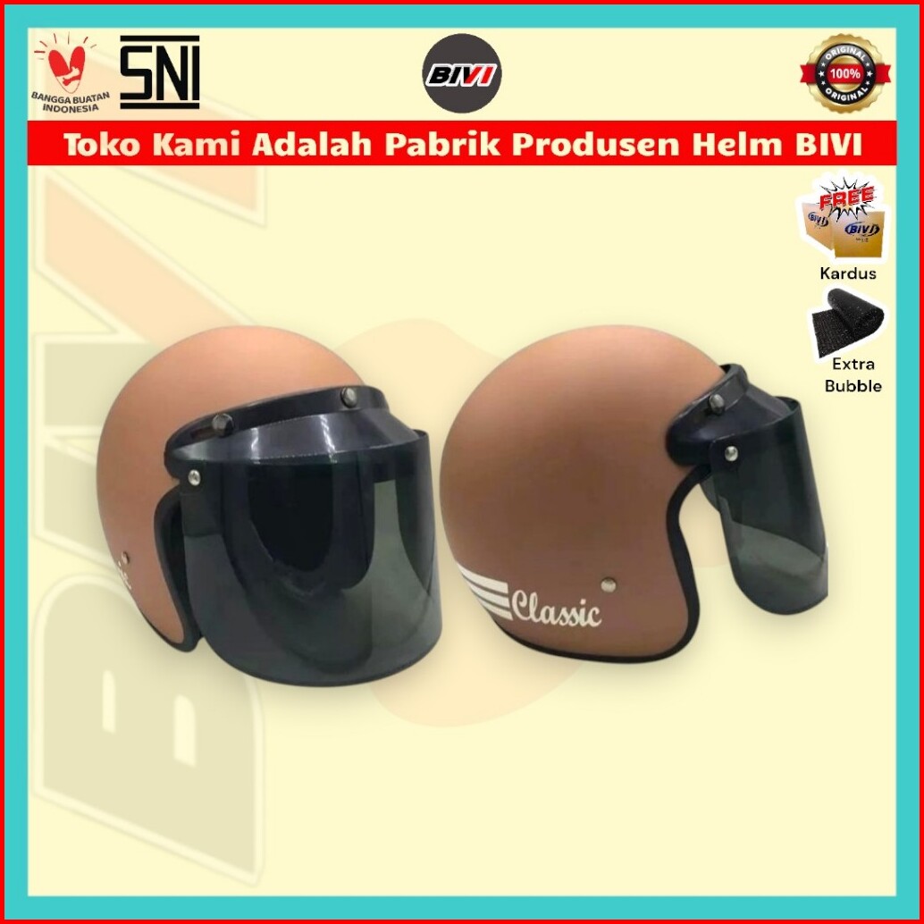 Helm Bivi Bogo Classic Dan Kaca - Polos Solid-half Face Sni Dewasa Pria - Wanita Hijab