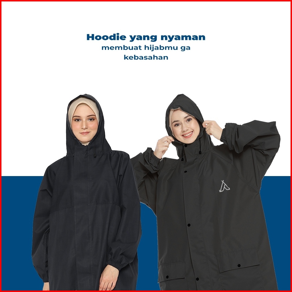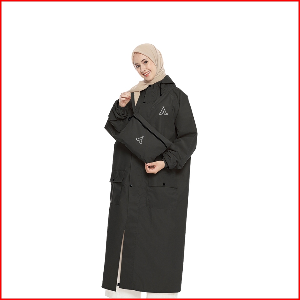 Jas Hujan Raincoat Mantel Wanita Perempuan Dewasa Muslimah Hijab Gamis Syar I Bahan Taslan Rok Ponco Atva Varsha Black