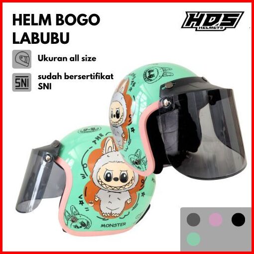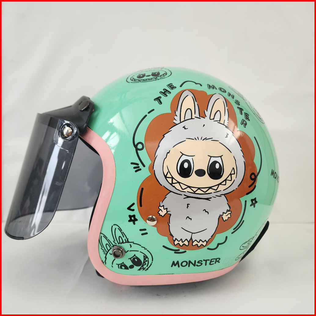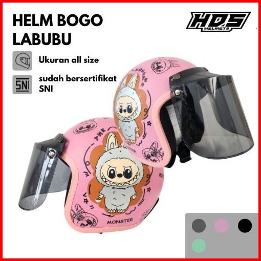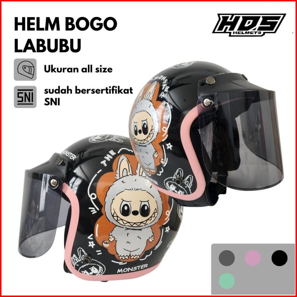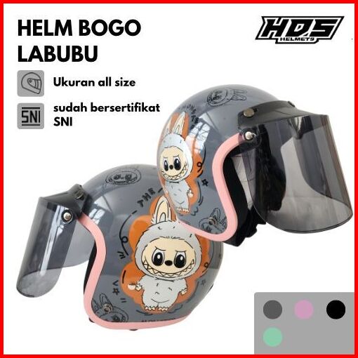 Helm Bogo Dewasa Half Face Classic Motif Labubu Sni Hds Helmet Retro Cepol Hijab Wanita Pria