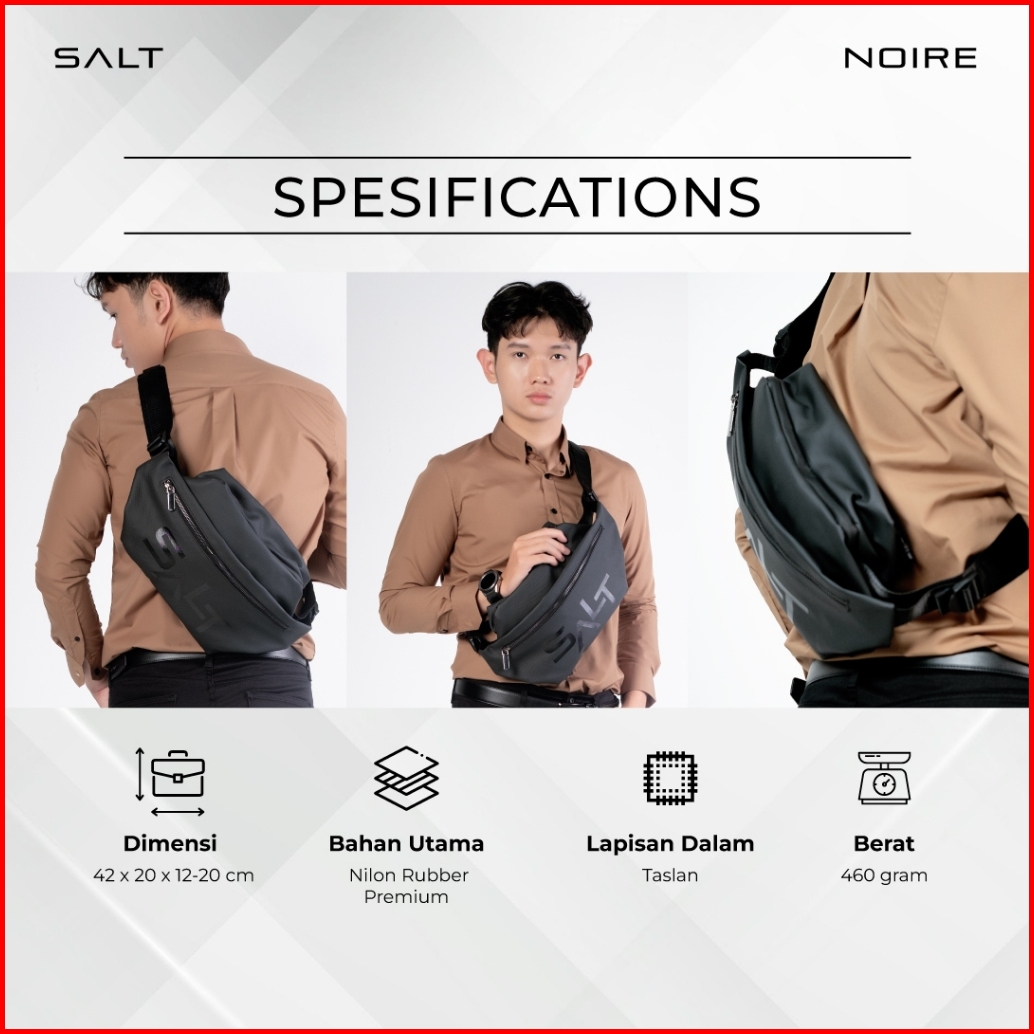 Salt Noire Tas Dada Pinggang Cowok Waistbag Garansi Waterproof Formal Pria Kantor Distro Selempang