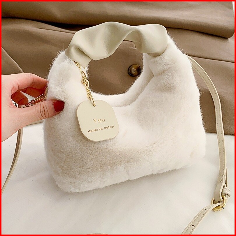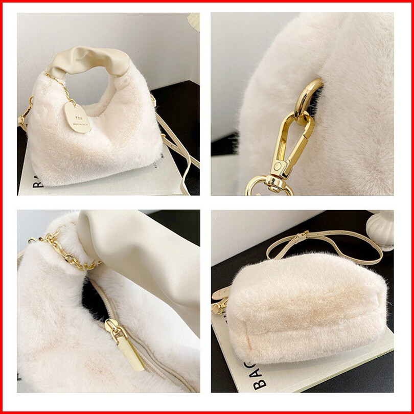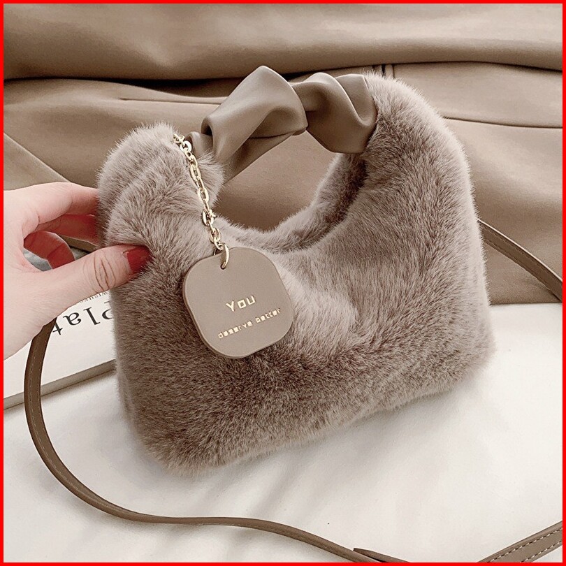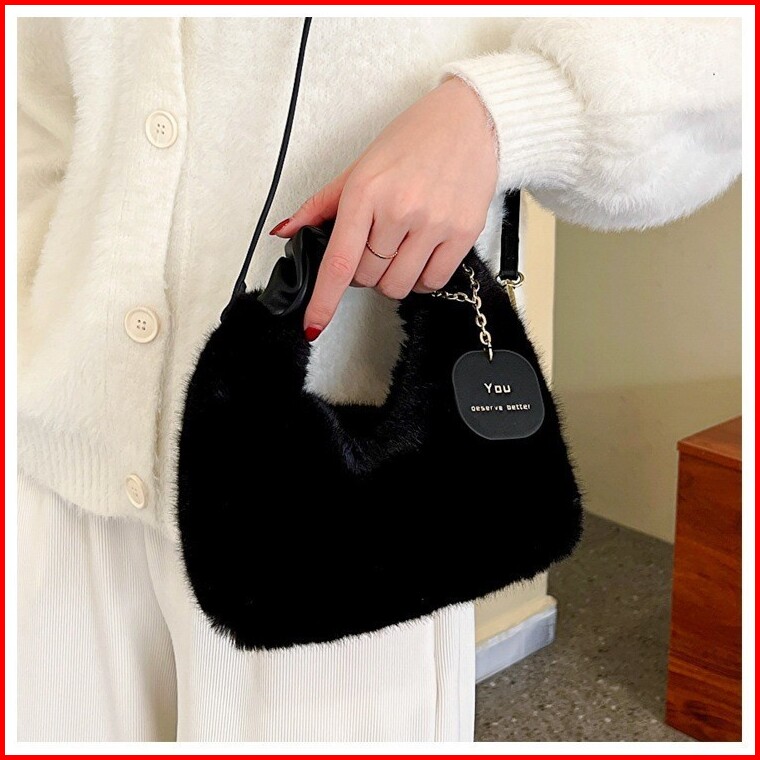 Tas Bahu Wanita Tas Selempang Lucu Berbulu Tas Selempang Wanita Bergaya Retro Tas Bahu Jinjing Kecil