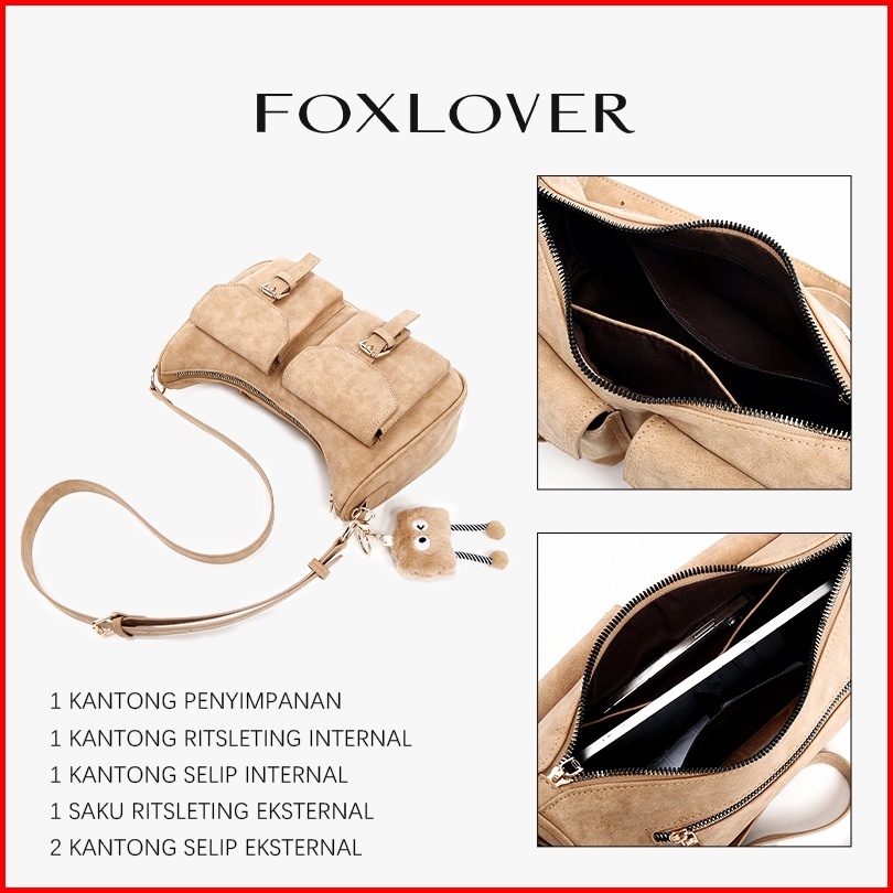 Foxlover Tas Kompartemen Wanita Tas Selempang Model Baru 2025 Desain Retro Gaya Korea