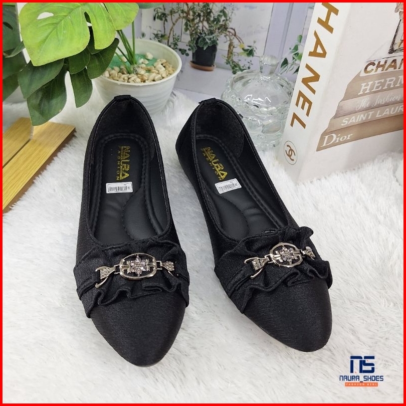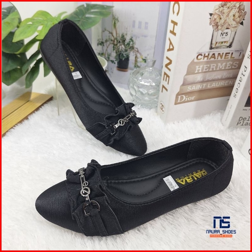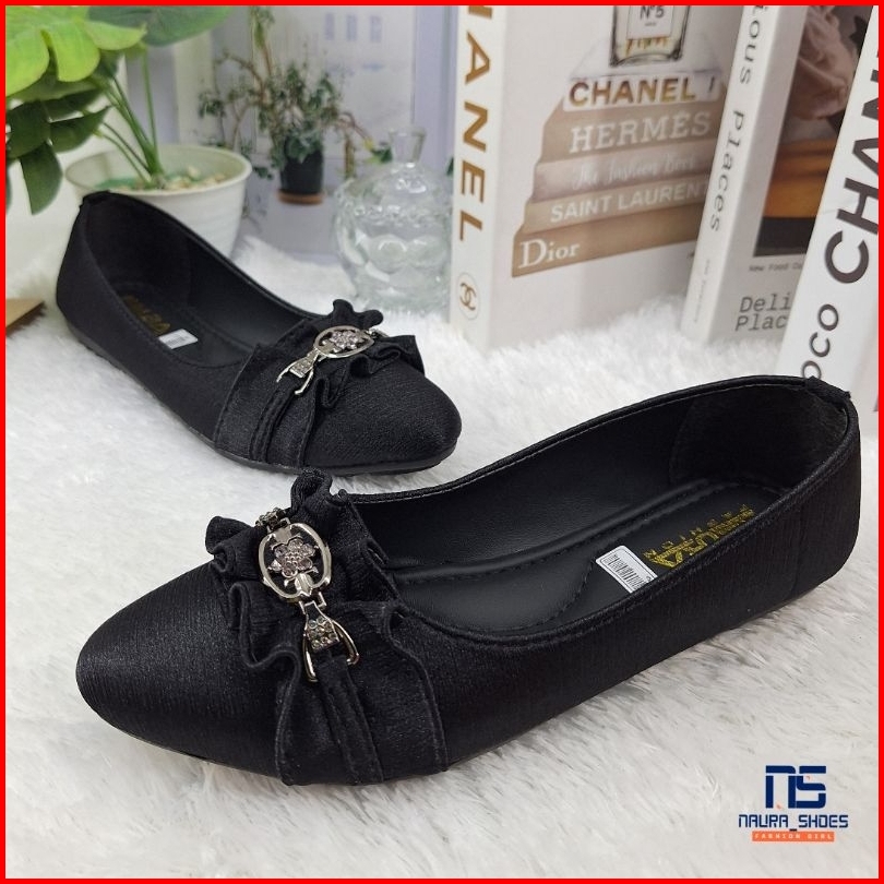 Naura Shoes Sandal Dan Sepatu Wanita Dewasa Zayana Flatshoes Slip On Pansus Satin Hitam Korean Style Kekinian Terbaru