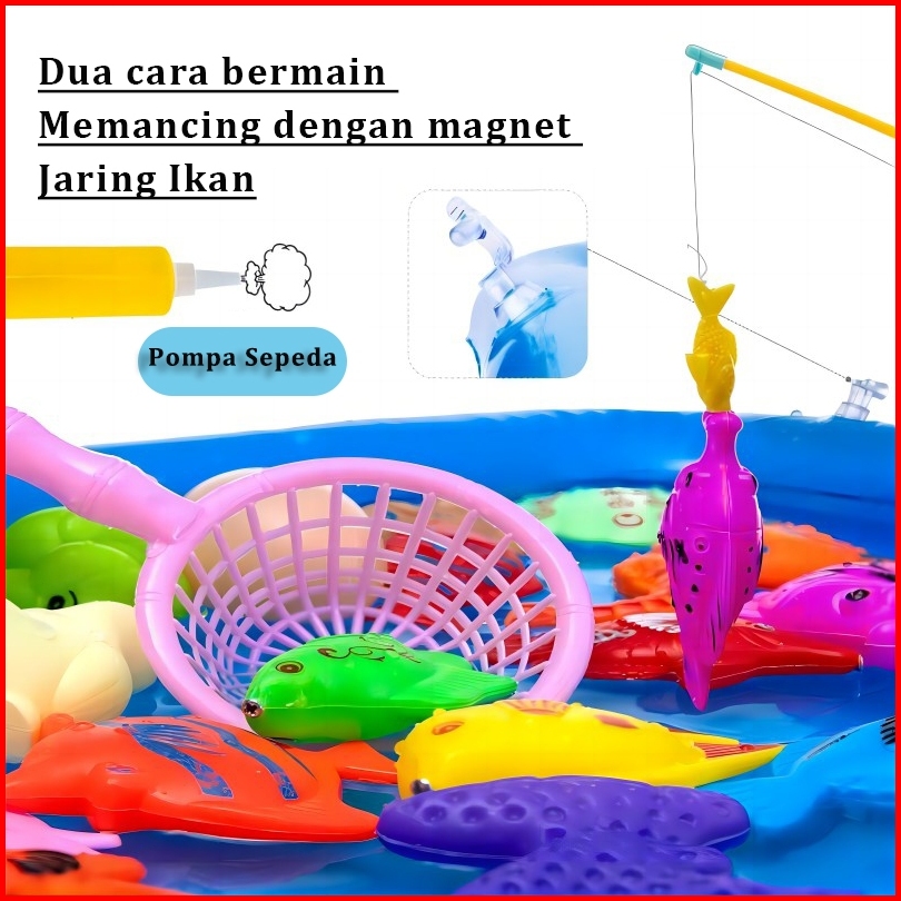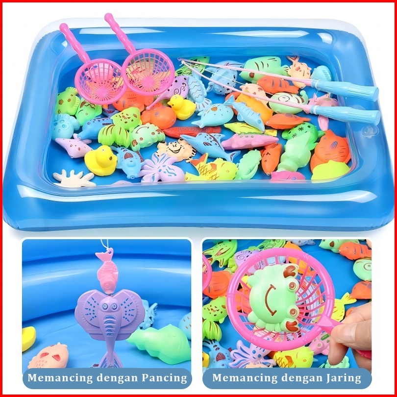 Jiqile Mainan Anak Pancing Dan Kolam Pancingan Magnet Anak Set Mainan Memancing 16 32 40 50 60 Pcs Dengan Kolam Mainan M