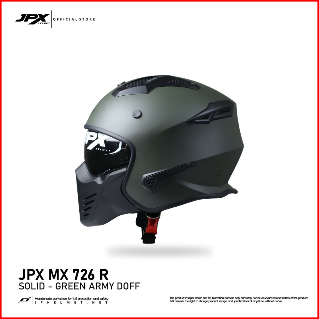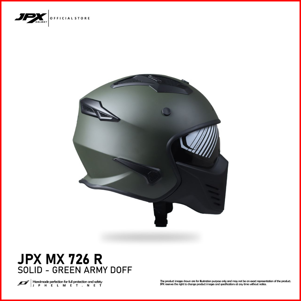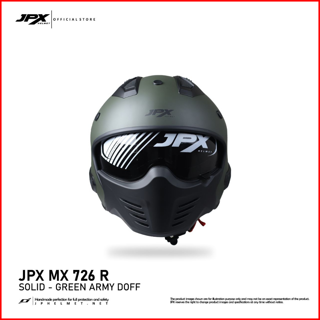 Helm Jpx Full Face Mx-726r New Solid - Green Army Doff