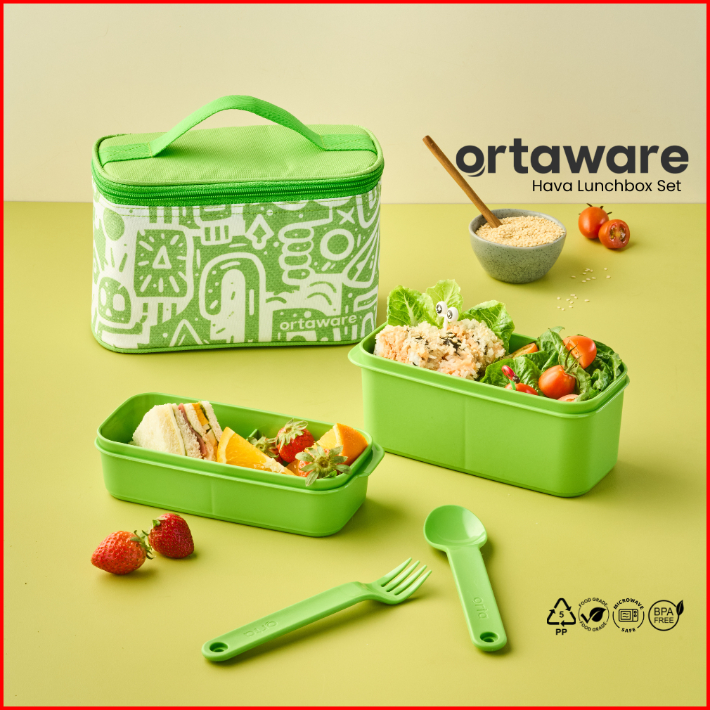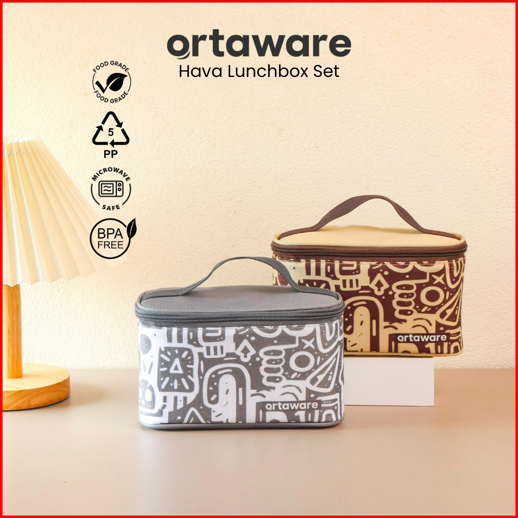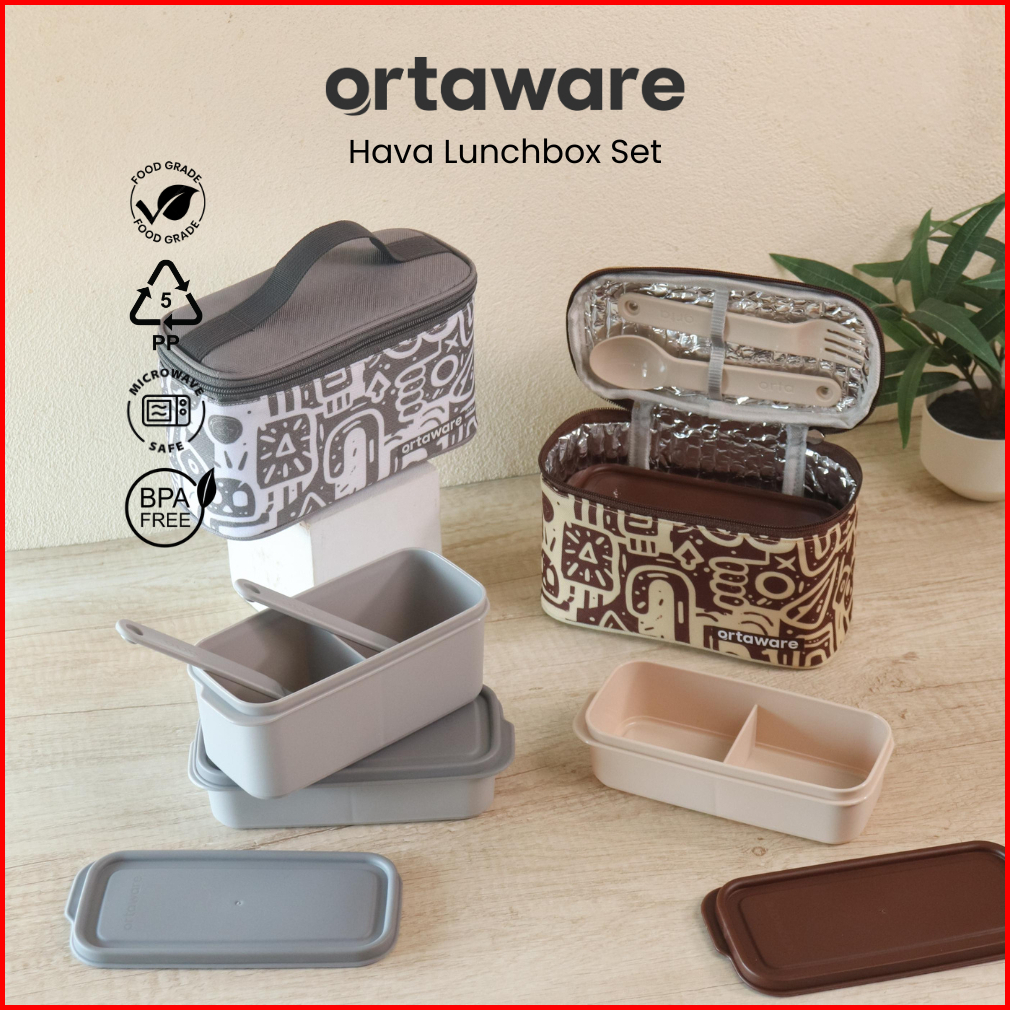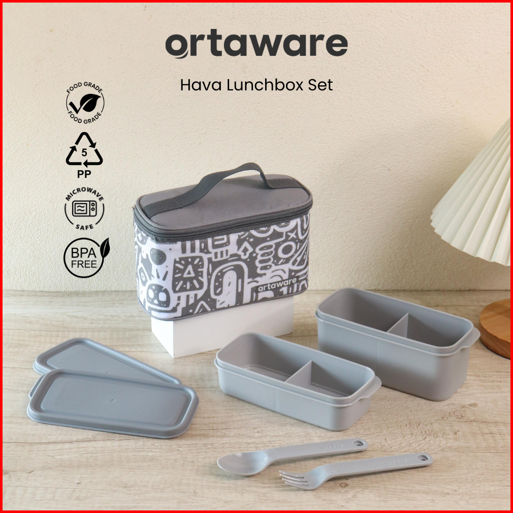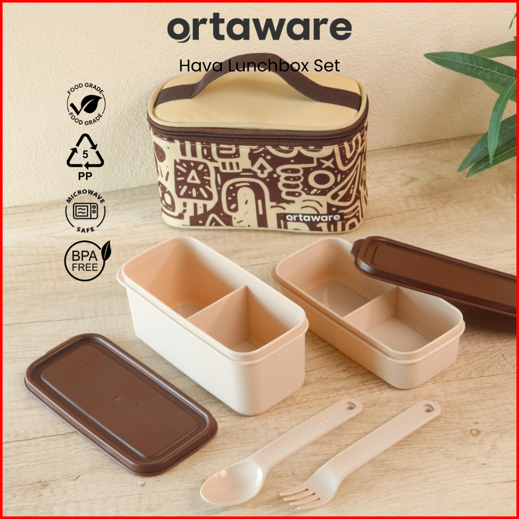 Hava Lunchbox Set Ortaware Tas Tempat Bekal 2 Sekat Sendok Garpu Bpa Free Microwave Safe