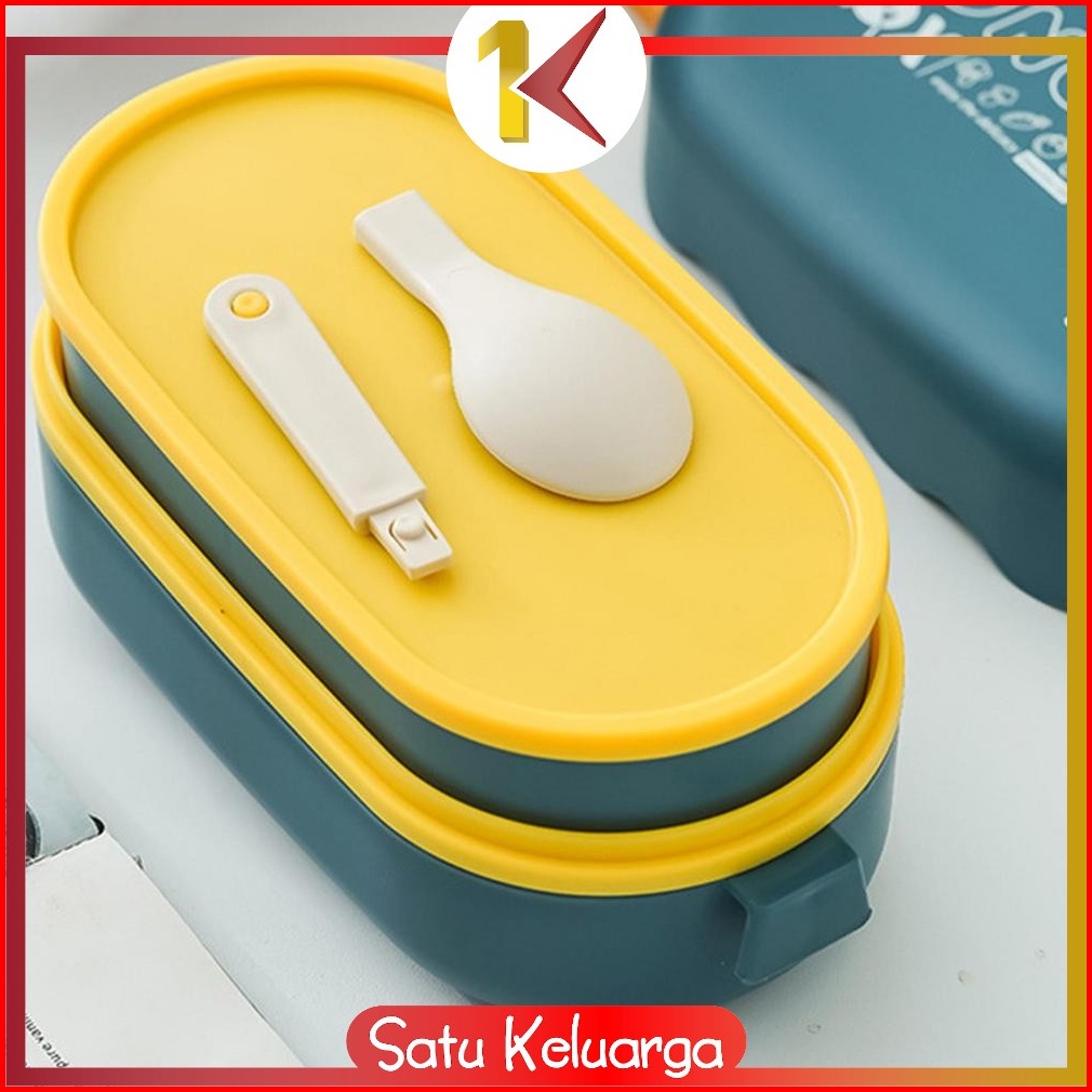 Sk-c780 Lunch Box Bento Set 850ml Kotak Bekal Makan Siang Free Sendok Kotak Makan 2 Tingkat Portable Anti Tumpah