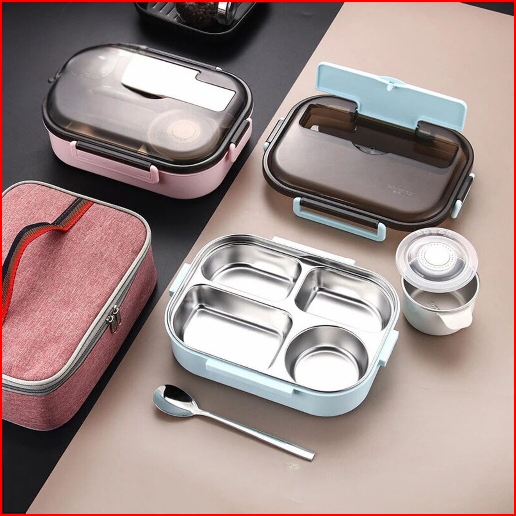 Rumahcantik - Lunch Box 304 Stainless Steel Baja Tahan Karat Food Grade Kotal Bekal Bento Set Tahan Panas Dengan Alat Ma