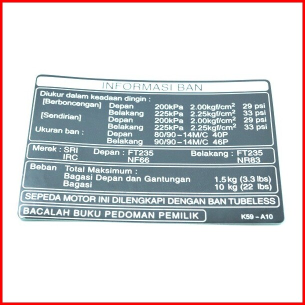 Label Tire Indonesia Beat Esp Vario 125 Esp Vario 150 Esp 87505k59a10