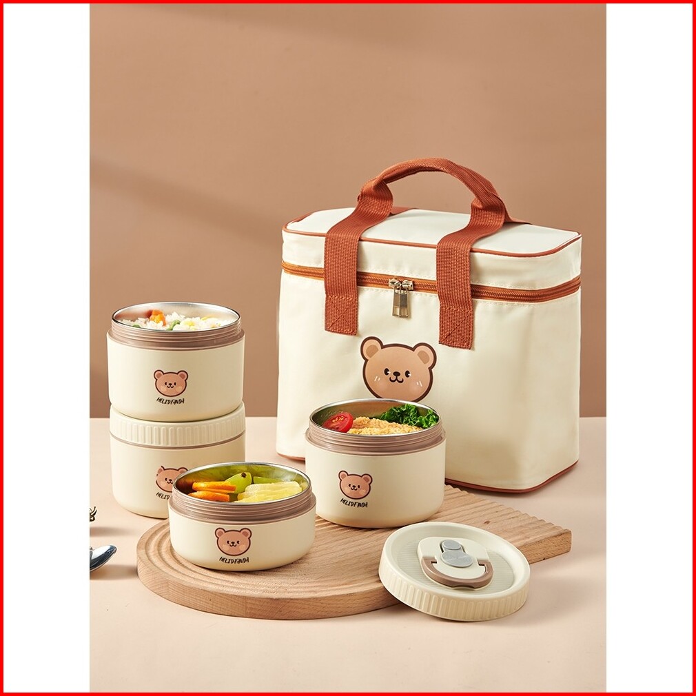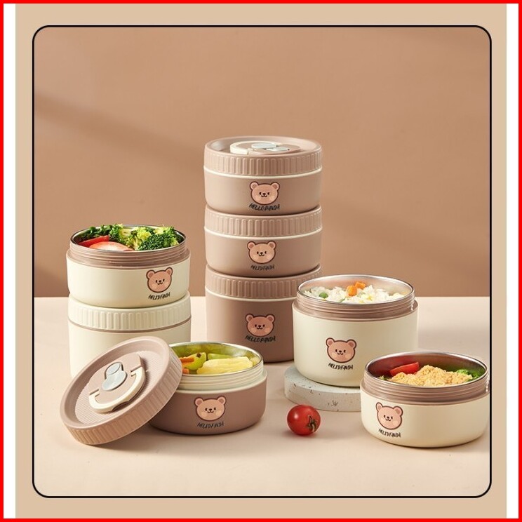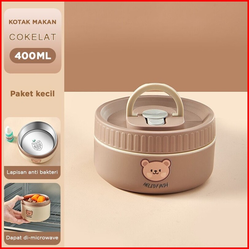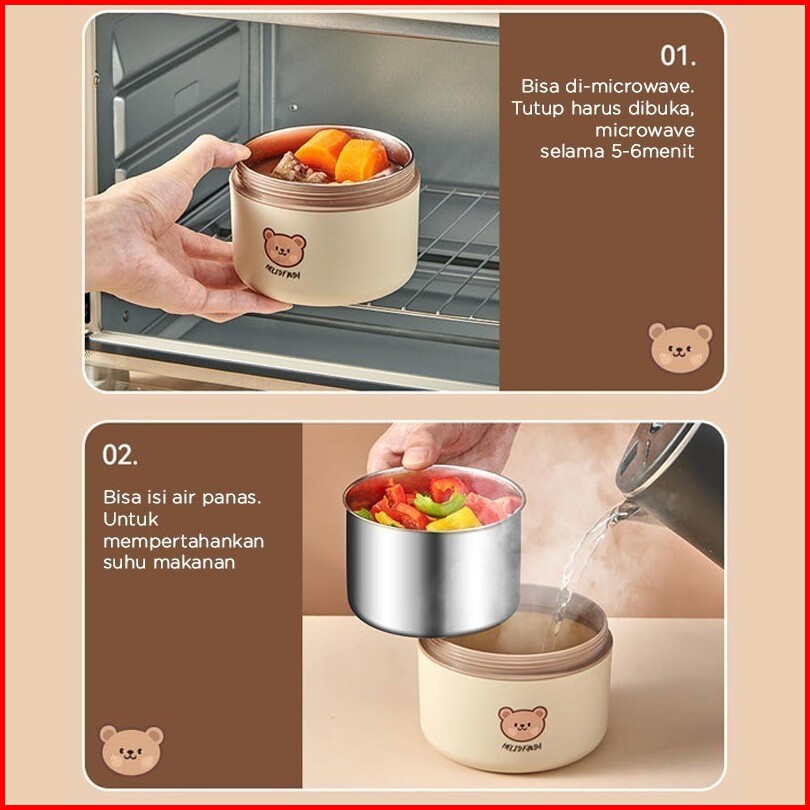 Helidfanda Lunch Box Kotak Makan Anak Bear Termos Sup Mpasi Dengan Pegangan Stainless Steel - G21504
