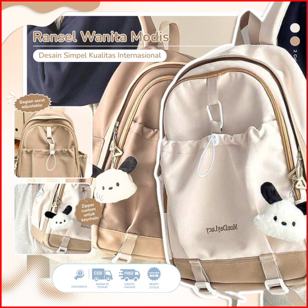 Tas Ransel Wanita Stylish Backpack Waterproof Anti Air Korean Look Aesthetic Simple Viral Muat Laptop Backpack Siswa Kap