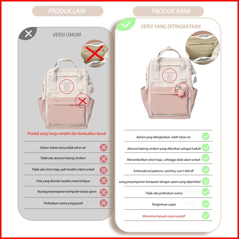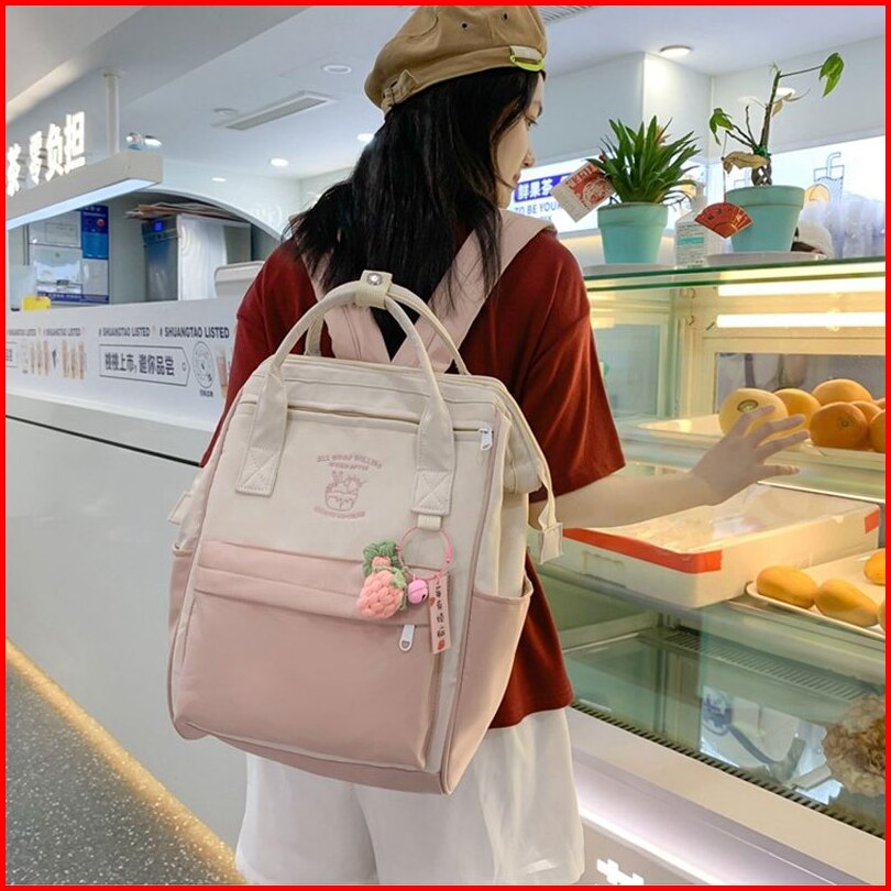 Nine Stars Warna Macaron Tas Ransel Wanita Ori Korea Tas Sekolah Anak Perempuan Kapasitas Besar