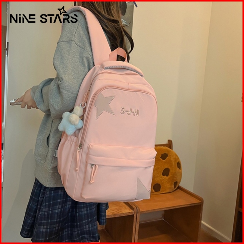 Nine Stars Tas Ransel Wanita Lucu Tas Ransel Serut Siswa Perempuan Tinggi Tas Perjalanan Tahan Air