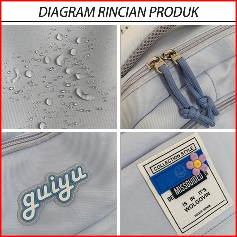 Nine Stars Korea Sma Wanita Tas Sekolah Ransel Waterproof Laptop Backpack Retro Tas Ransel