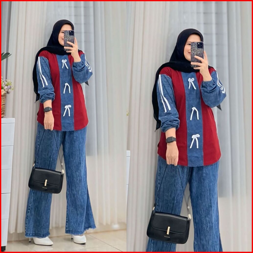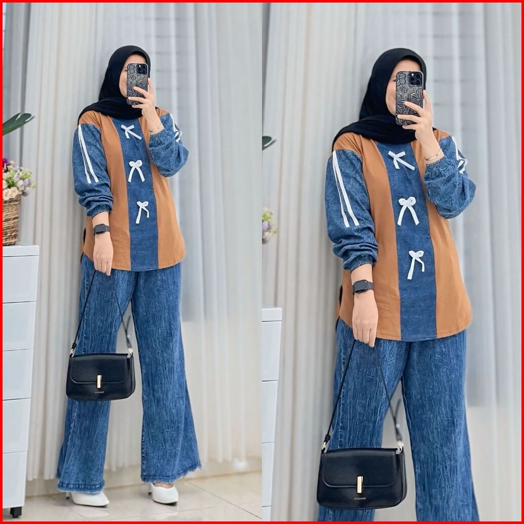 Setelan Wanita Terbaru Aplikasi Pita Setelan Jeans Wanita Terbaru Kekinian Oneset Jeans Kekinian Setelan Baju Wanita Ter