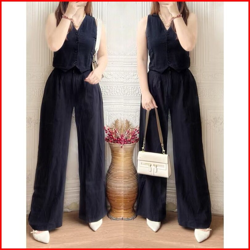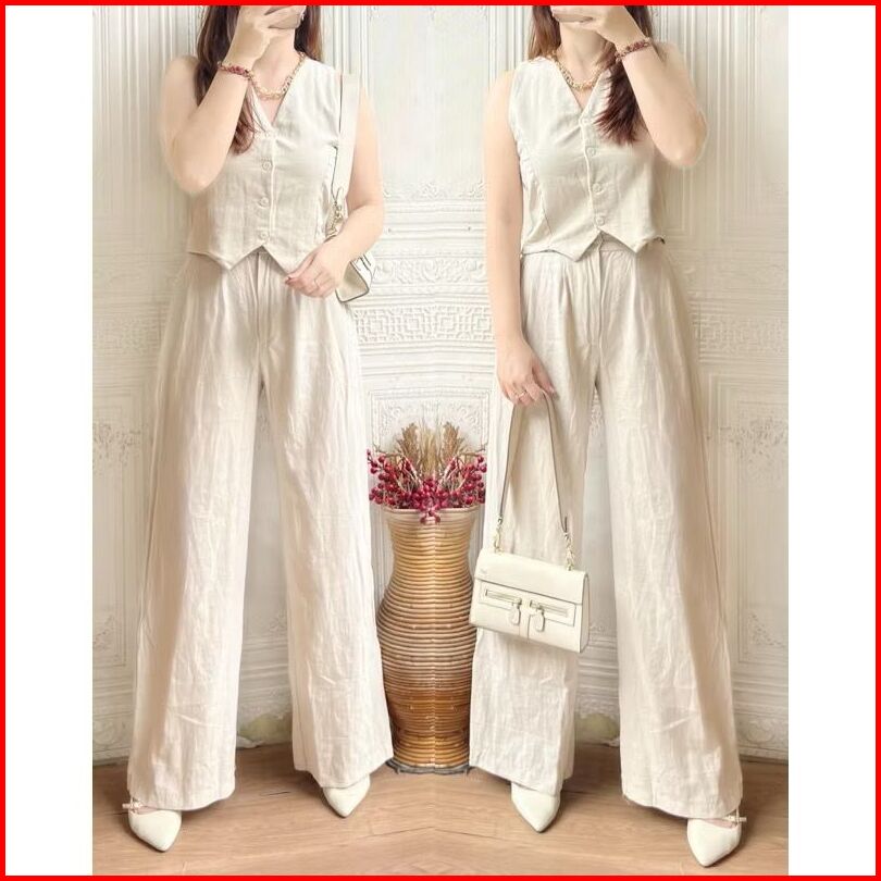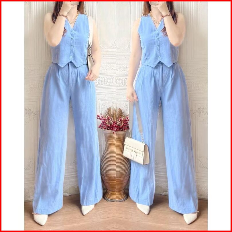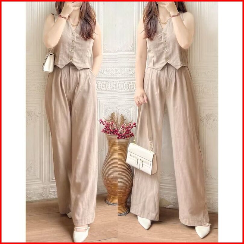 Revlyn One Set Linen Long Pants One Set Kekinian One Set Rok One Set Wanita Kekinian One Set Vest