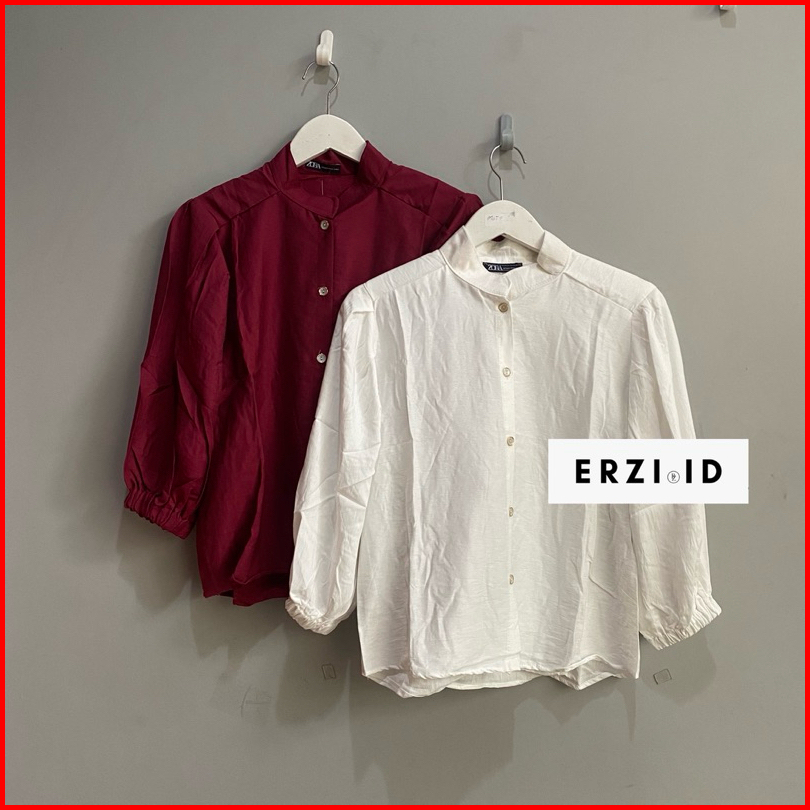 Blouse Korean Style Linen Lengan Balon Blouse Wanita Blouse Vintage