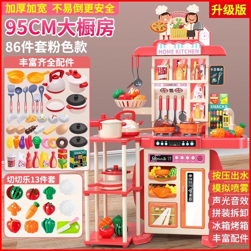 Mainan Kitchen Set Jumbo Dengan Wastafel Cuci Piring Bisa Keluar Air Dan Embun Uap Saat Masak Tinggi 95 Cm Lengkap 86 Ak