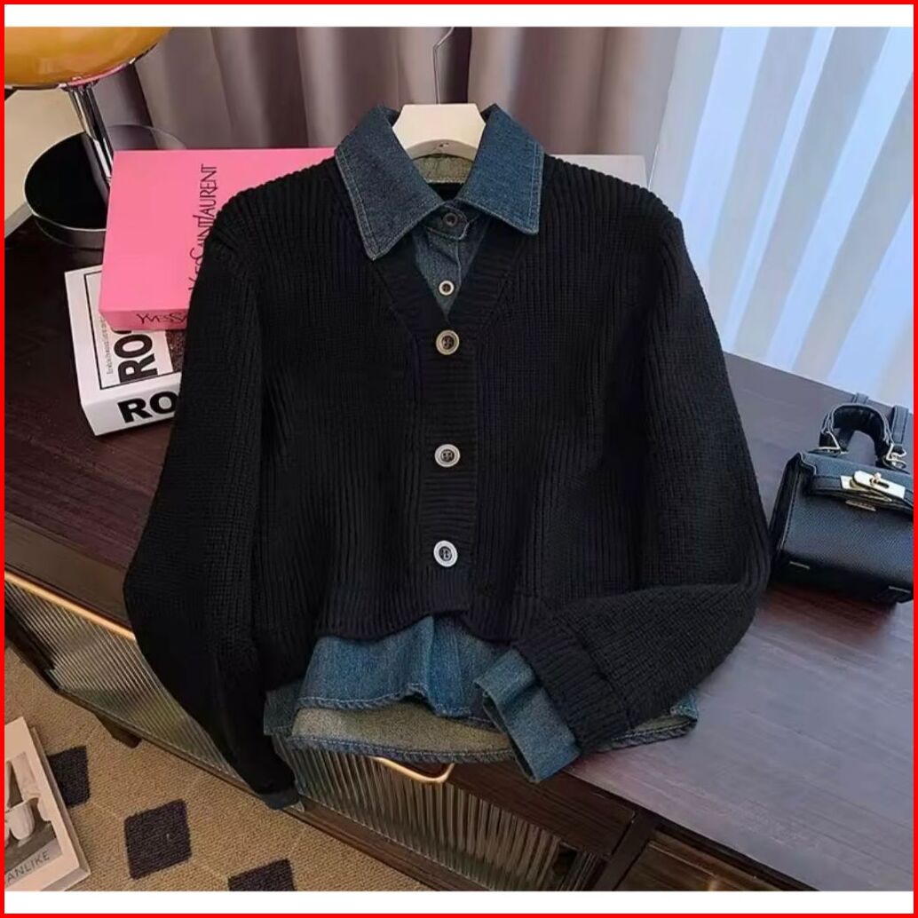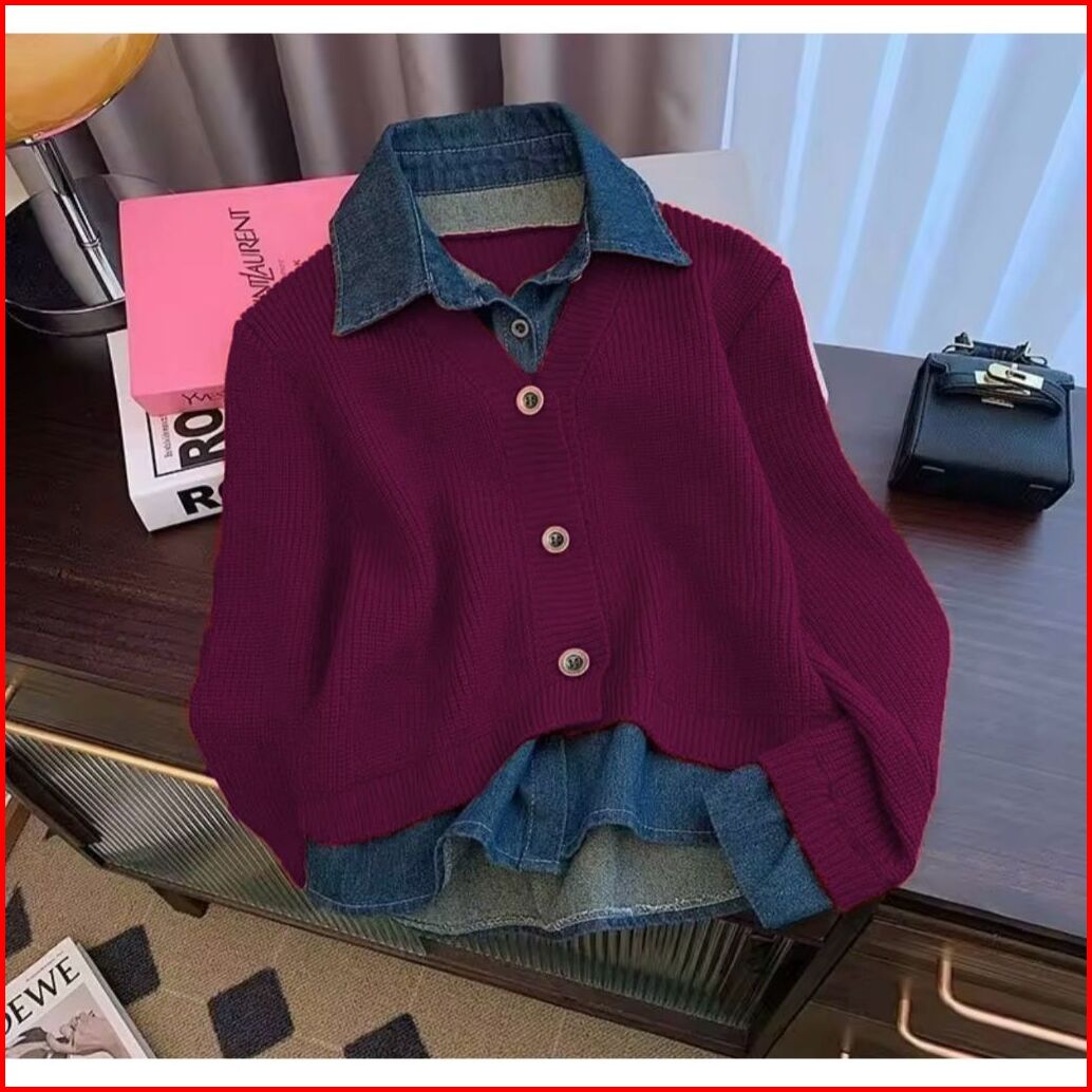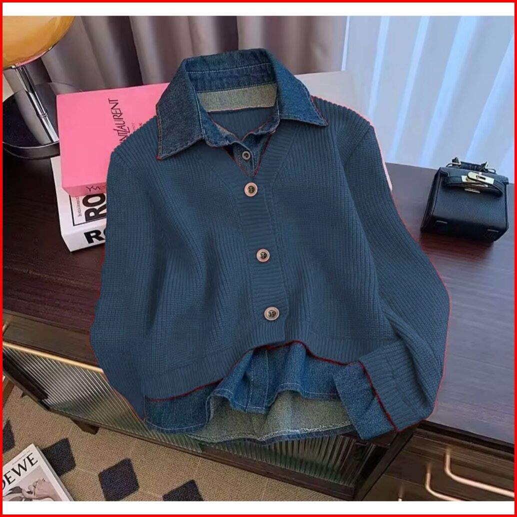 Ahalya - Blouse Korea - Knit Mix Jeans - Korea Blouse Oversize