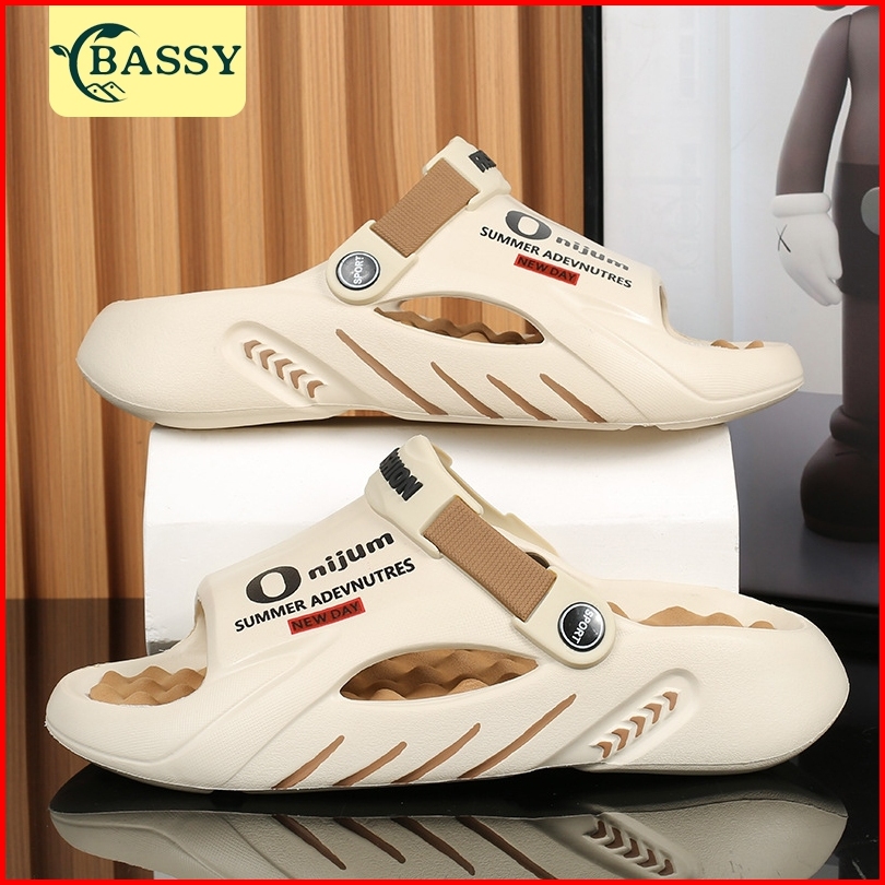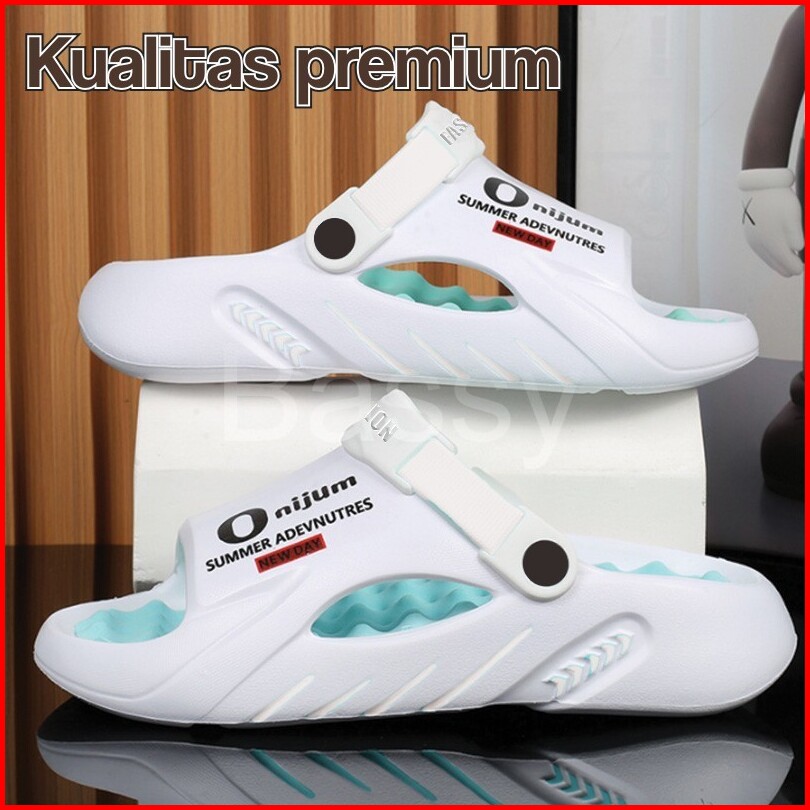 Bassy Sandal Pria Terbaru 2023 Slip On Selop Karet Anti Slip Rumah Tali Belakang Kekinian Hsn236