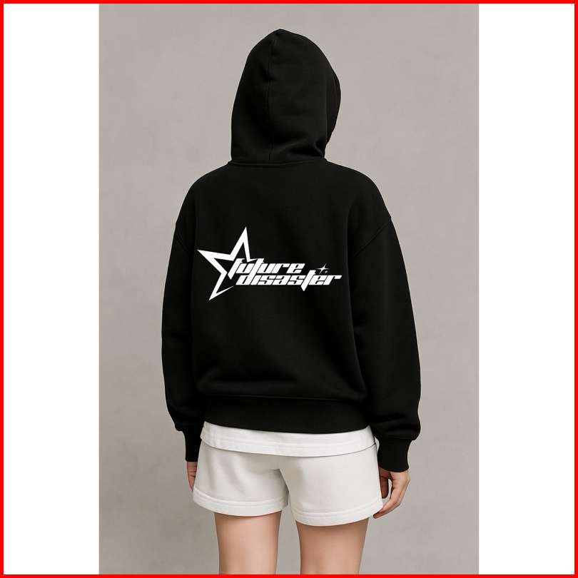 Gadabang Hoodie Boxy Starboy Oversize Sablon Menyala Reflective Future Disaster Hitam