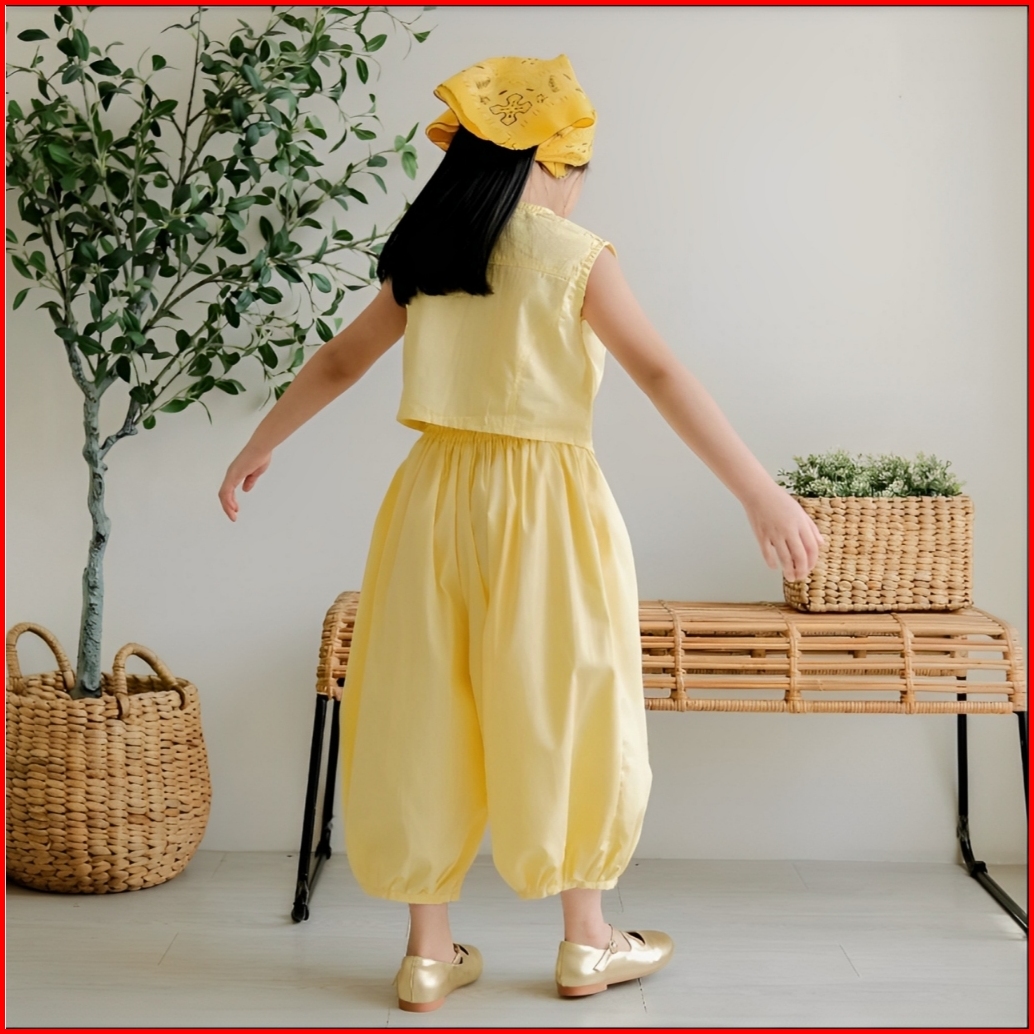 Olivia Set One Set Anak Perempuan Import 3-12 Tahun Katun Linen Setelan Anak Perempuan