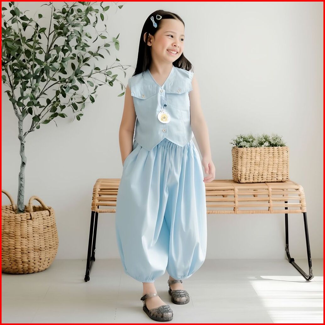 El-zahra - Olivia Set One Set Anak Perempuan Usia 3-12 Tahun Bahan Katun Linen
